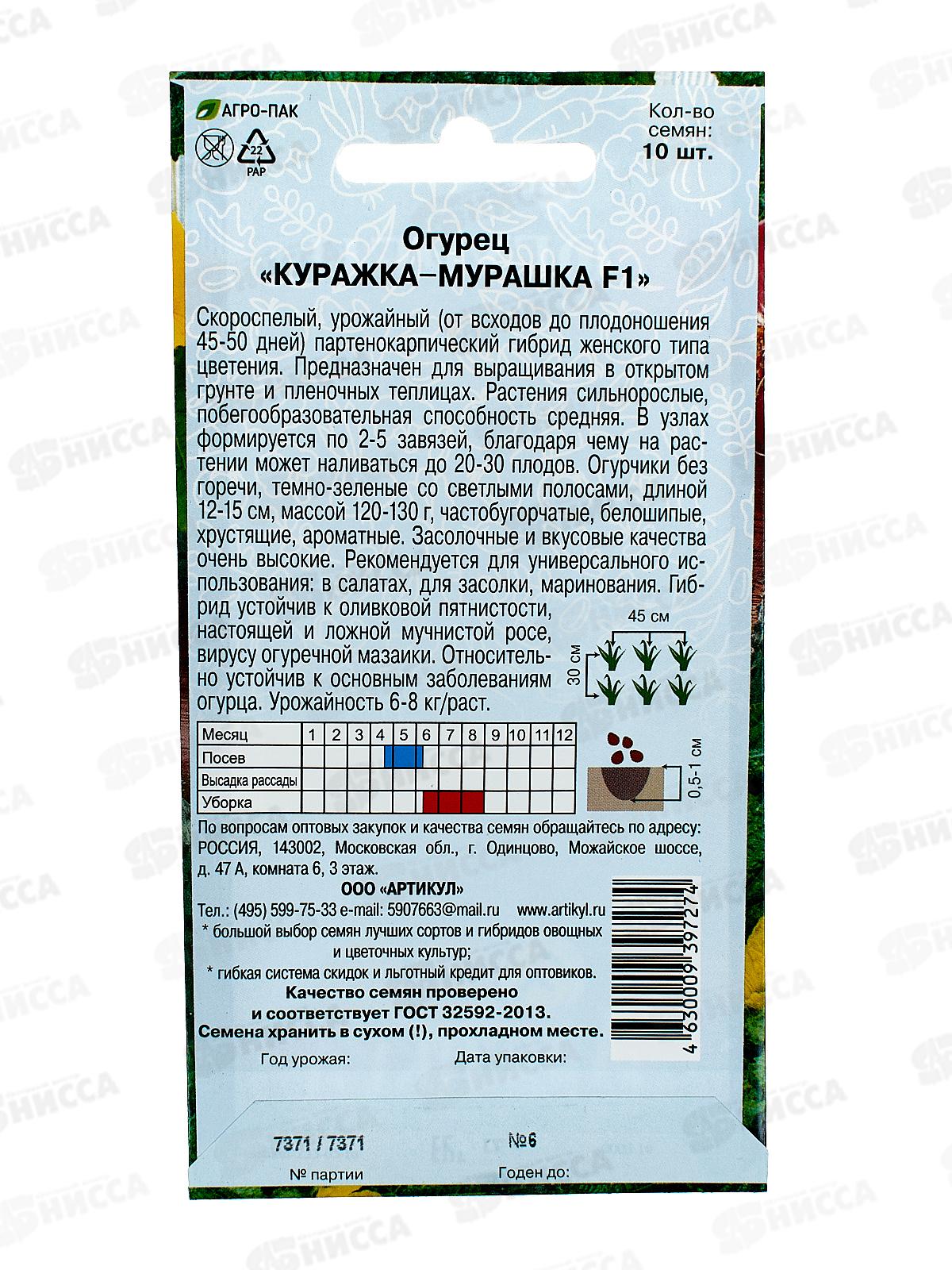 Скороспелый, урожайный (от всходов до плодоношения 45-50 дней) партенокарпический гибрид женского типа цветения. Предназначен для выращивания в открытом грунте и пленочных теплицах. Растения сильнорослые, побегообразовательная способность средняя. В узлах формируется по 2-5 завязей, благодаря чему на рас-тении может наливаться до 20-30 плодов. Огурчики без горечи, темно-зеленые со светлыми полосами, длиной 12-15 см, массой 120-130 г, частобугорчатые, белошипые, хрустящие, ароматные. Засолочные и вкусовые качества очень высокие. Рекомендуется для универсального использования: в салатах, для засолки, маринования. Гибрид устойчив к оливковой пятнистости, настоящей и ложной мучнистой росе, вирусу огуречной мазаики. Относительно устойчив к основным заболеваниям огурца. Урожайность 6-8 кг/раст.