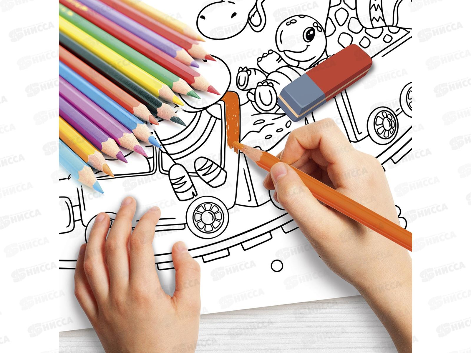Коврик-раскраска - это многоразовая и многофункциональная раскраска для детей с изображением африканских животных. Раскрашивать коврик можно цветными карандашами и фломастерами. Карандаши стираются обычным ластиком, а фломастеры – просто смываются водой или влажной салфеткой. Коврик изготовлен из мягкого приятного пластика со специальным покрытием, благодаря которому на нем возможно бесконечное множество раз рисовать, стирать и снова рисовать.