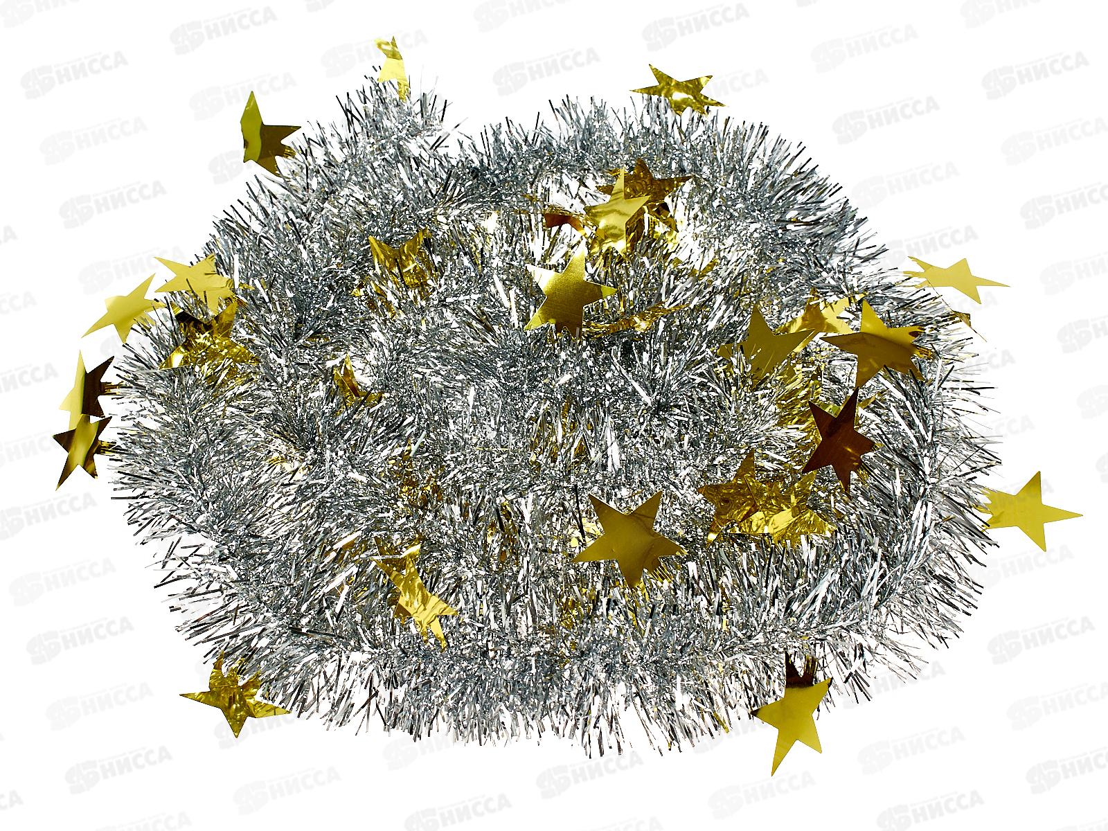 Мишура 002015 звездочки большие 5см х 2м. серебро+золото, AL-3356 *600