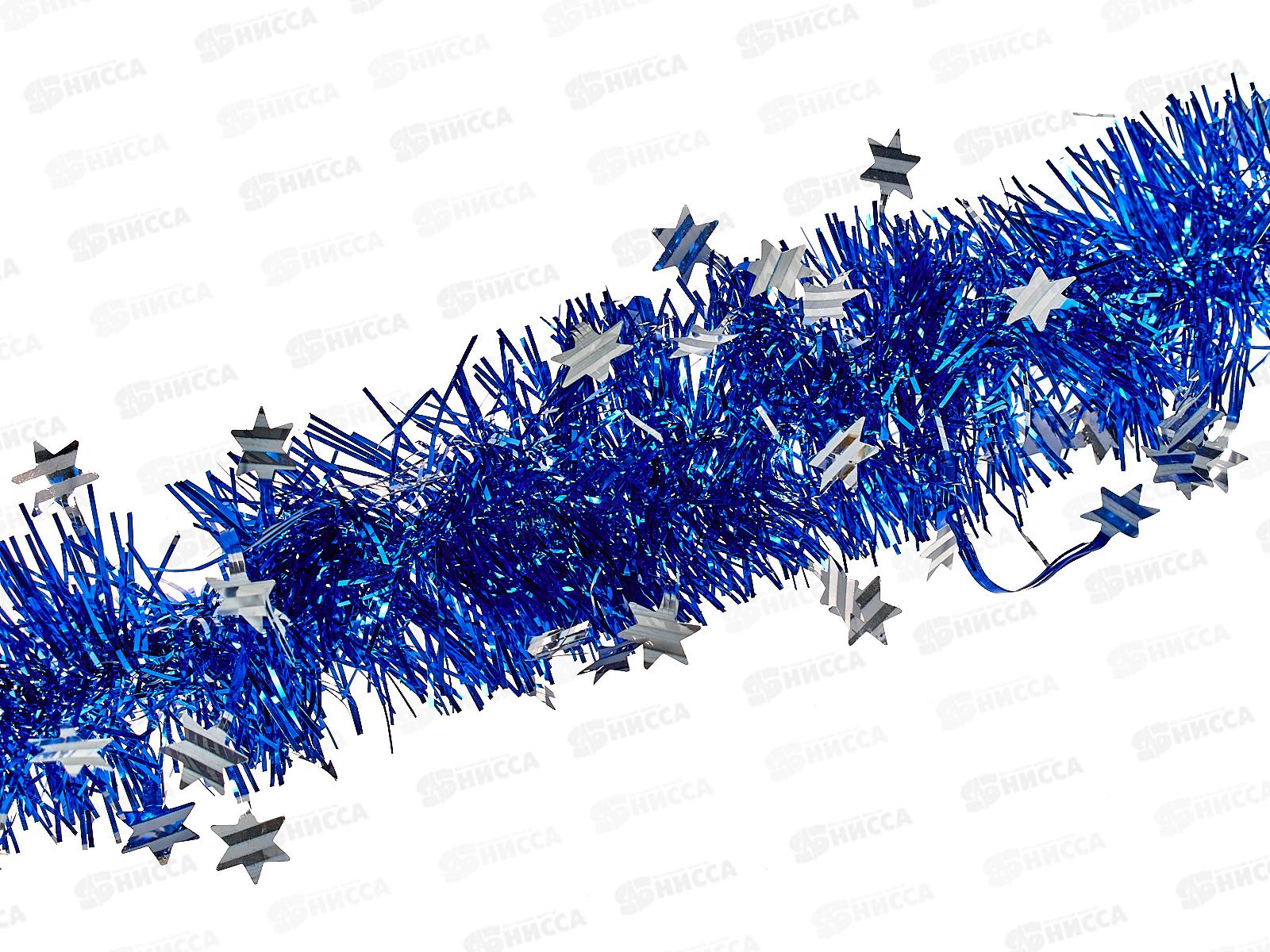 Мишура 002015 5см х 2м , AL-8016, синий с белыми звездами*600