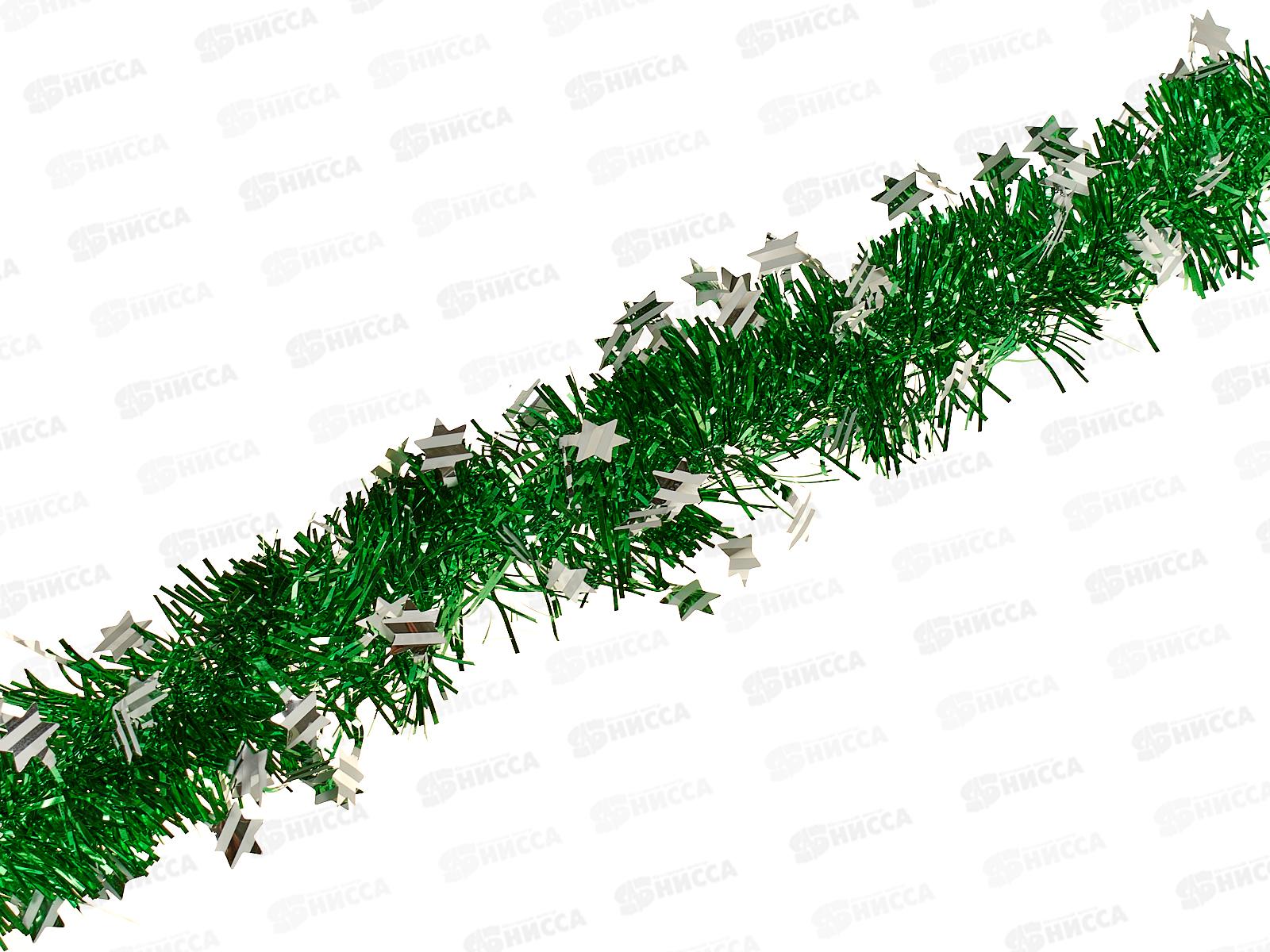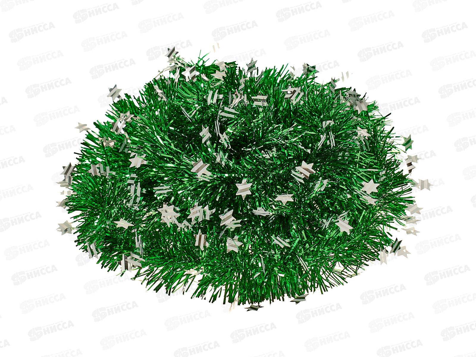 Мишура 002015 5см х 2м , AL-8016, зеленый с белыми звездами*600