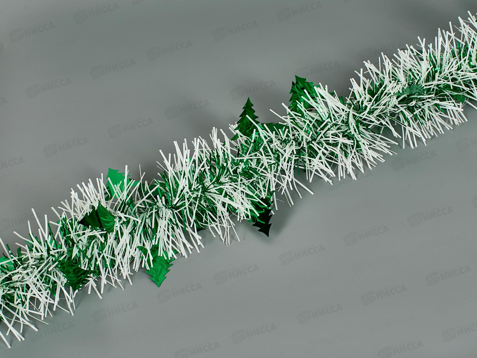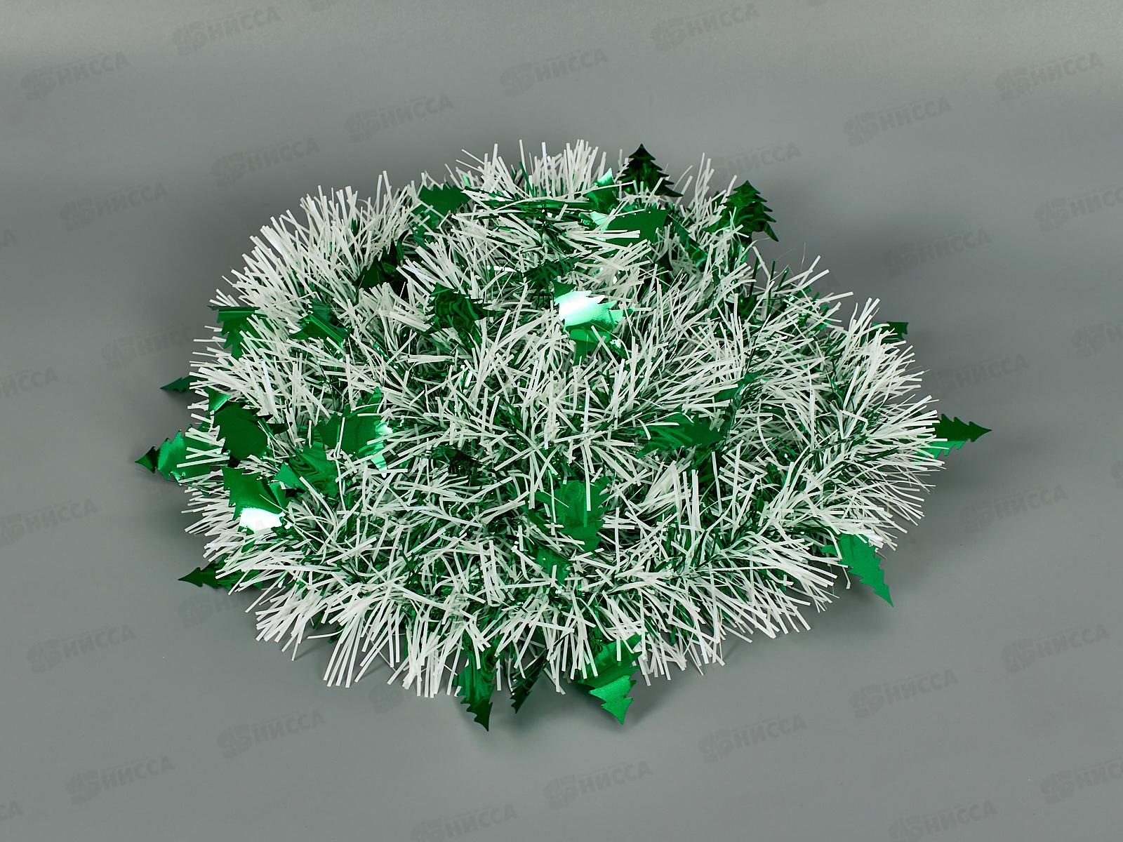 Мишура 002015 8см х 2м , AL-8018, белый с зелеными елочками *360