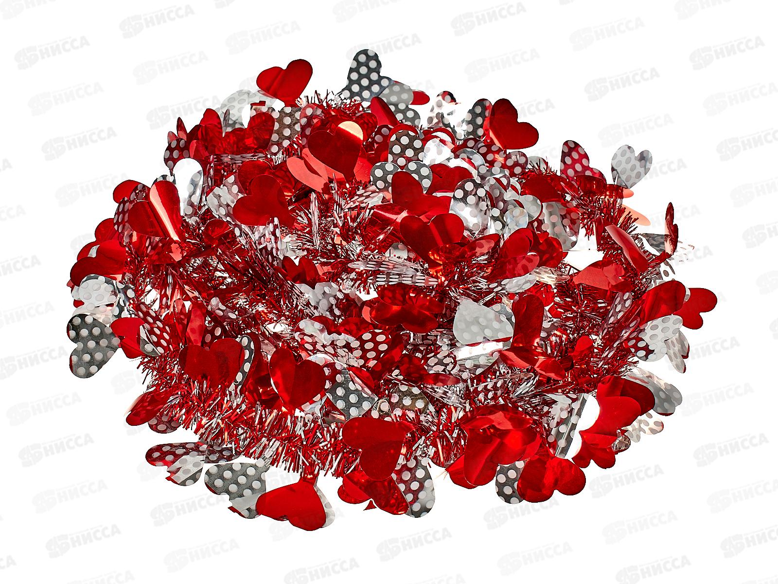 Мишура 002015 8см х 2м, AL-8020, красный-серебро с сердечками*500