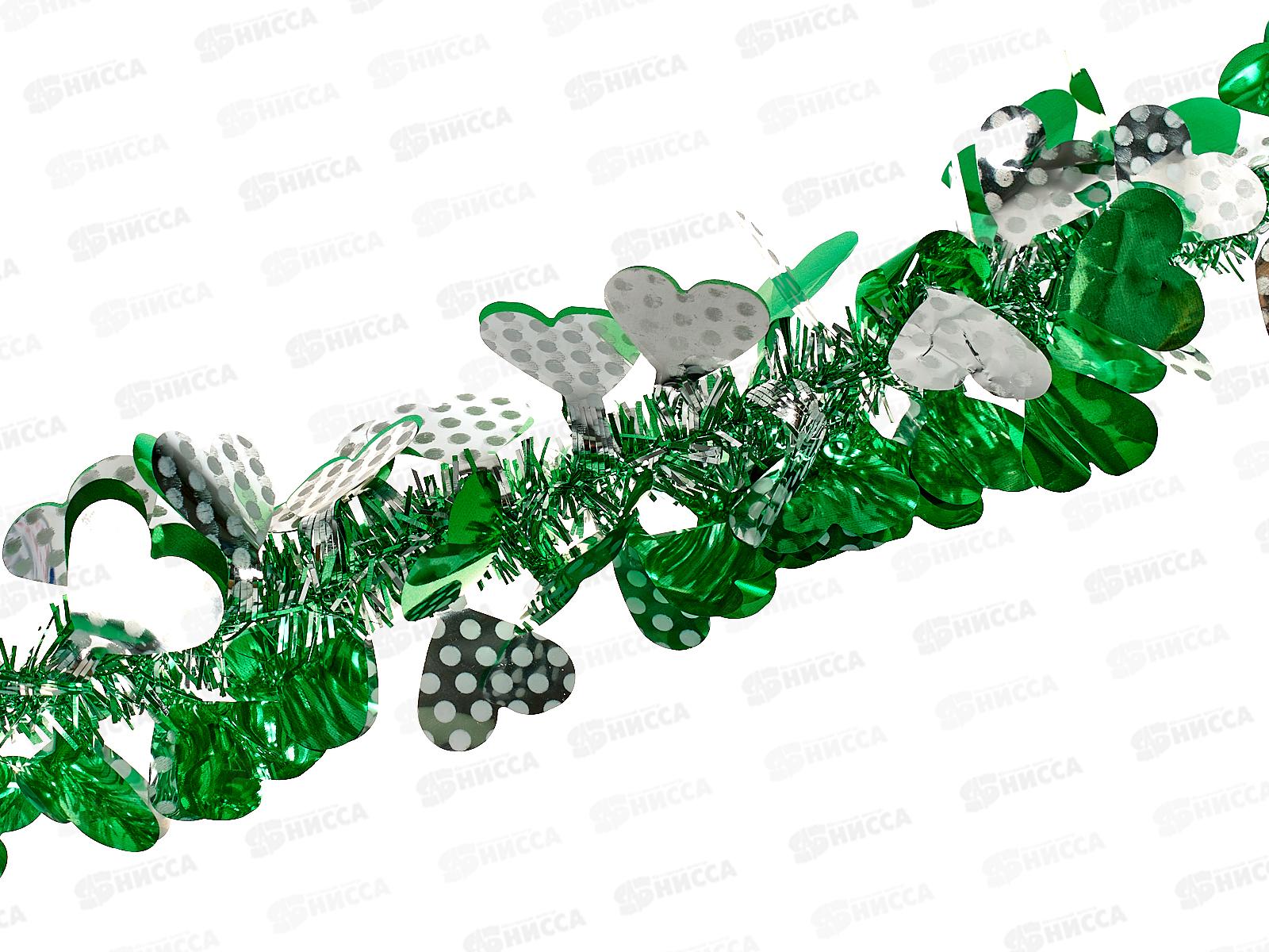 Мишура 002015 8см х 2м, AL-8020, зеленый-серебро с сердечками*500
