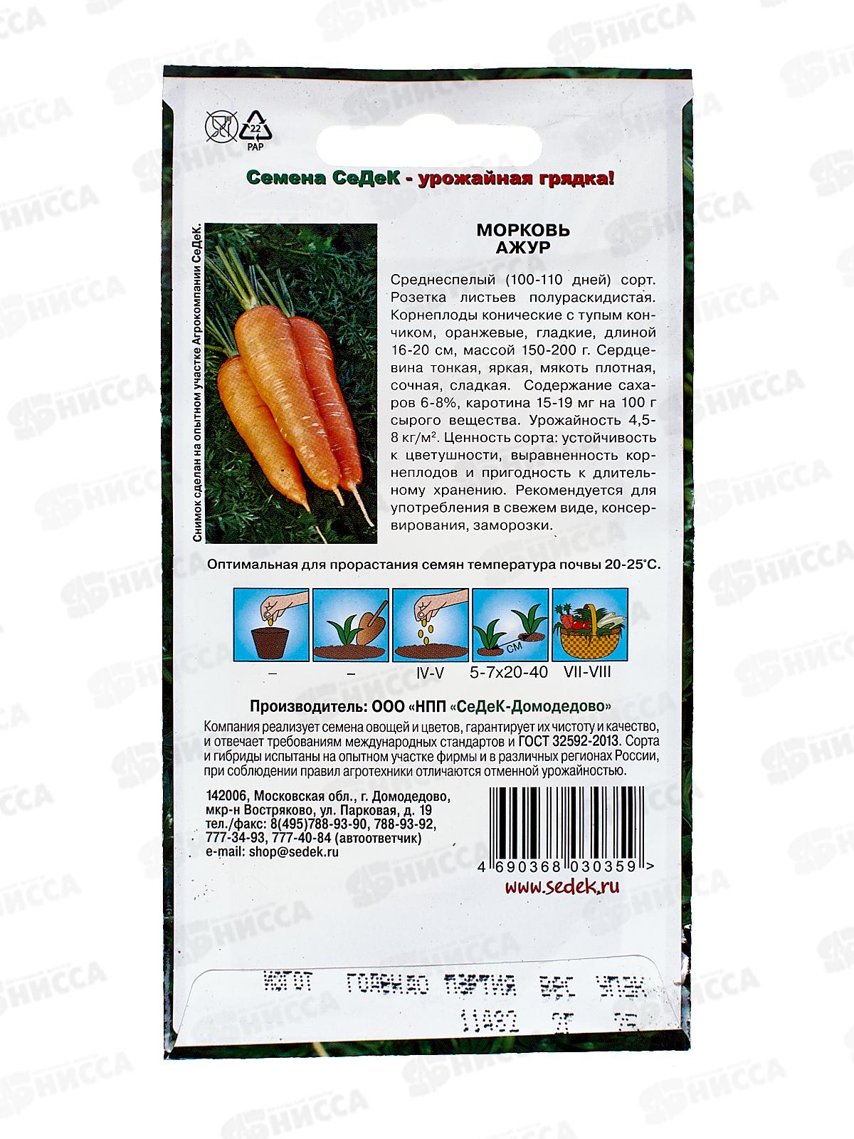 Среднеспелый (100-110 дней) сорт. Розетка листьев полураскидистая. Корнеплоды конические с тупым кончиком, оранжевые, гладкие, длиной 16-20 см, массой 150-200 г. Сердцевина тонкая, яркая, мякоть плотная, сочная, сладкая. Содержание сахаров 6-8%, каротина 15-19 мг на 100 г сырого вещества. Урожайность 4,5-8 кг/м2. Ценность сорта: устойчивость к цветушности, выравненность корнеплодов и пригодность к длительному хранению. Рекомендуется для употребления в свежем виде, консервирования, заморозки.