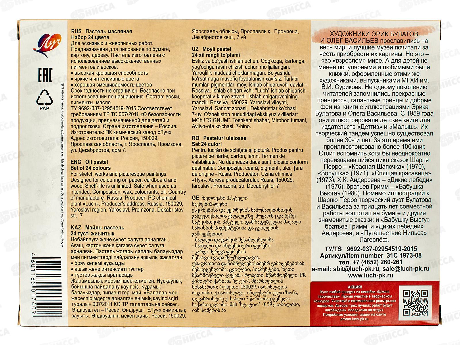 Пастель масляная ЛУЧ Школа творчества, 24 цвета, 31с1973-08 *12