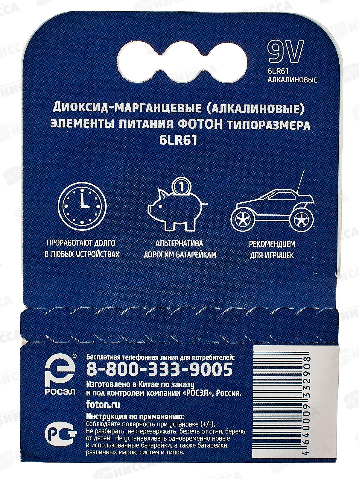 Батарейка ФОТОН 6LR61, OP1 *1/10/60/240