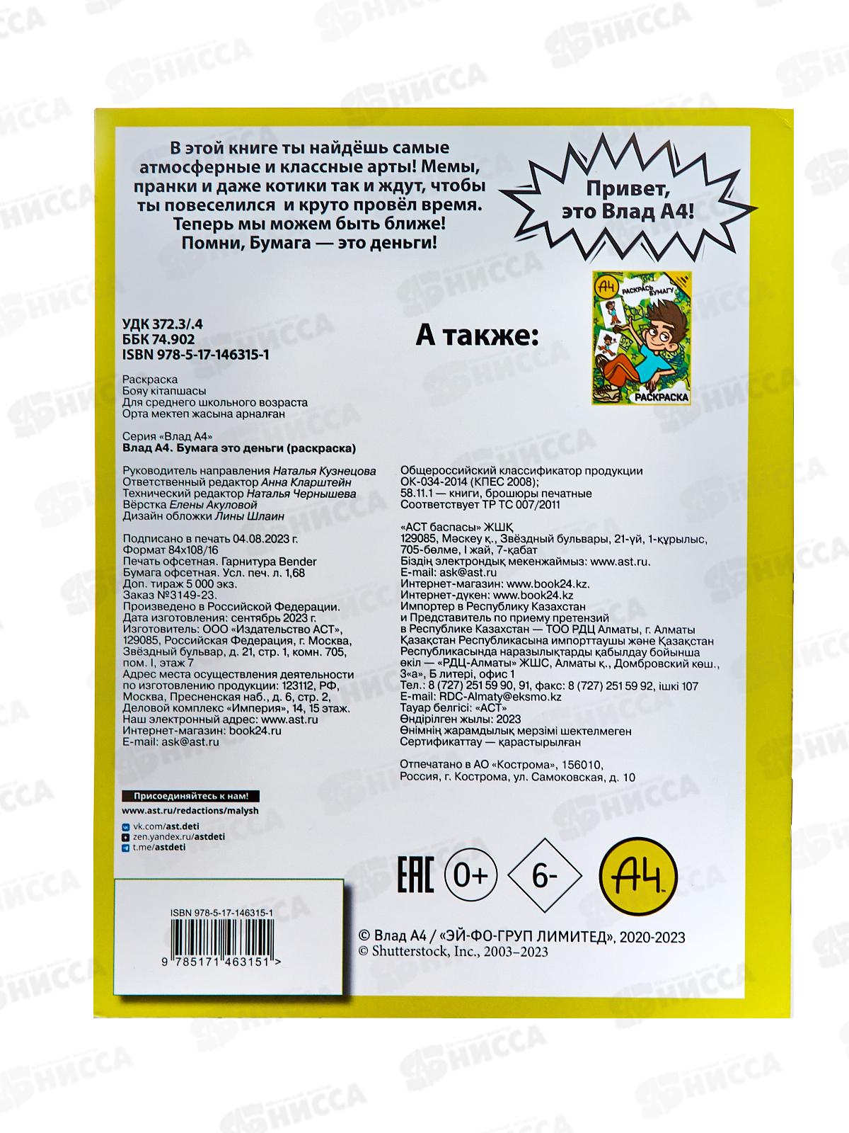 Раскраска АСТ Влад. А4. Бумага это деньги, 6315-1 *50