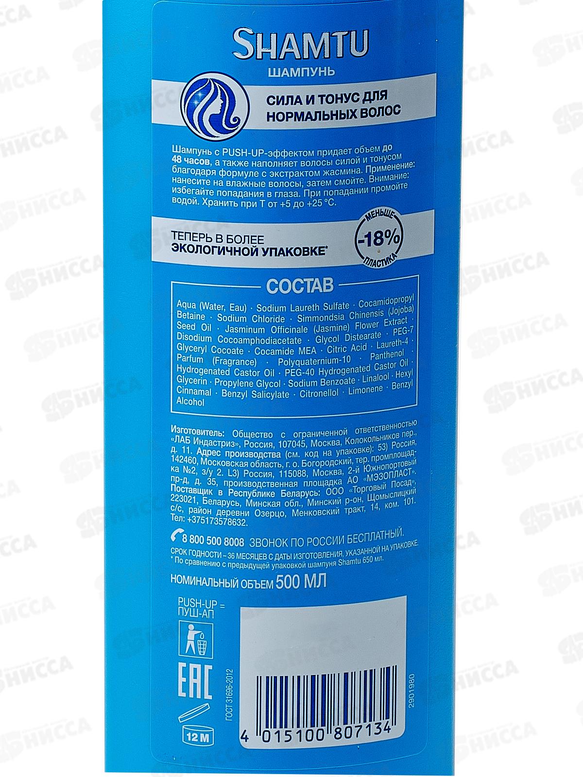 ШАМТУ шампунь 500мл Сила и тонус с экстрактом жасмина *12