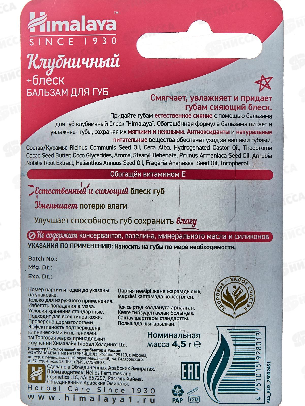 Himalaya since. Бальзам для губ "Клубничный блеск", 4,5г, 92801 *24