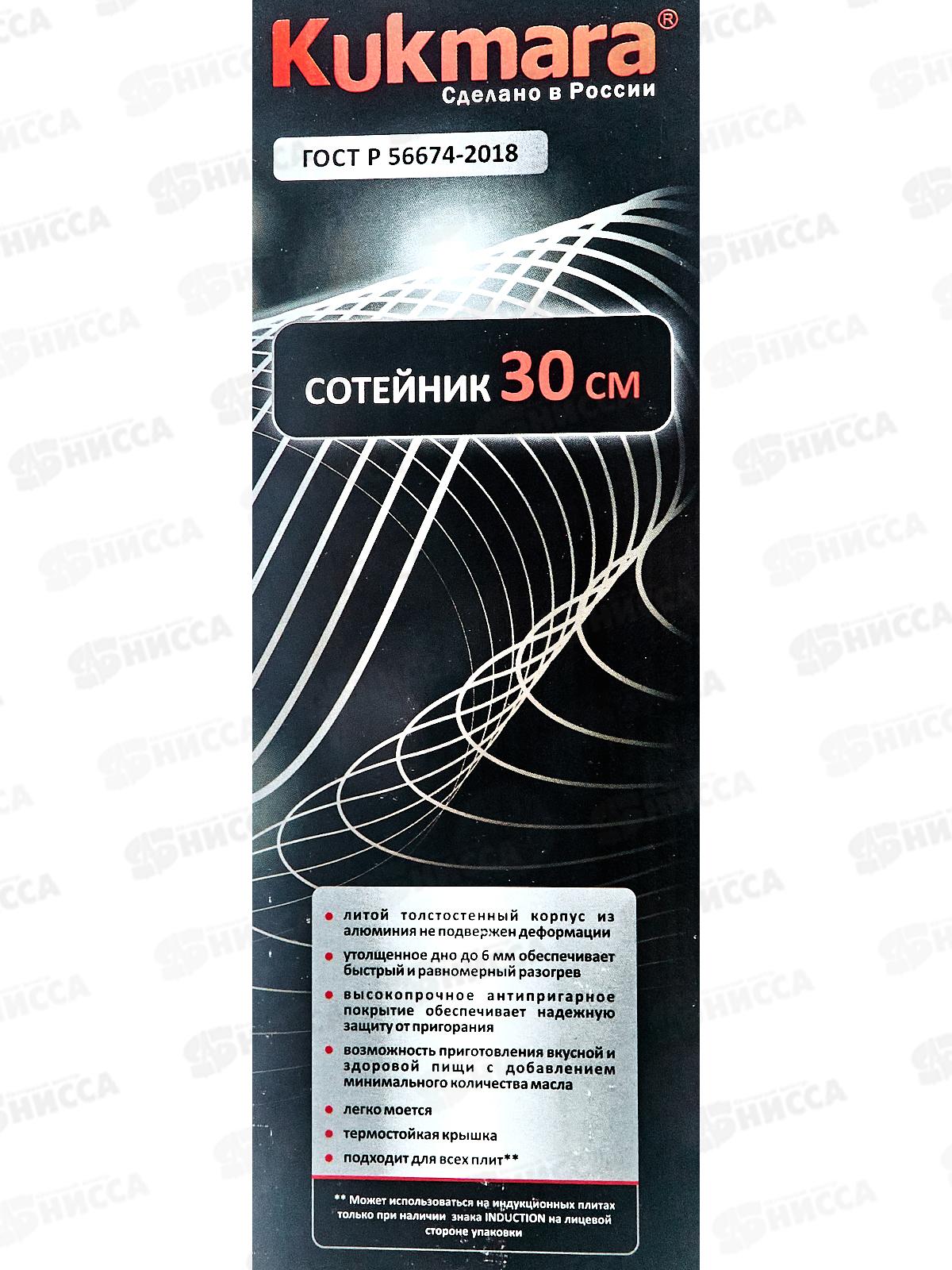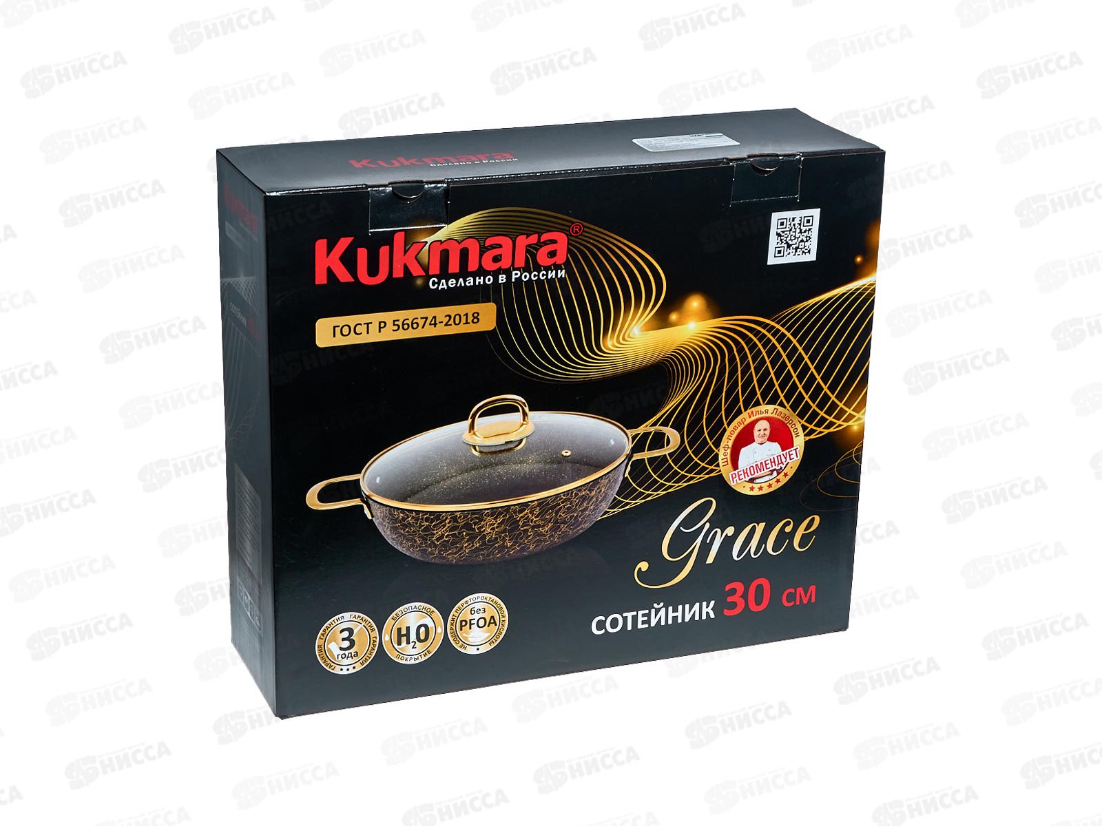 Сотейник 300/85мм Грация с ручкой стеклянной крышкой черный/серебро сгчс308а