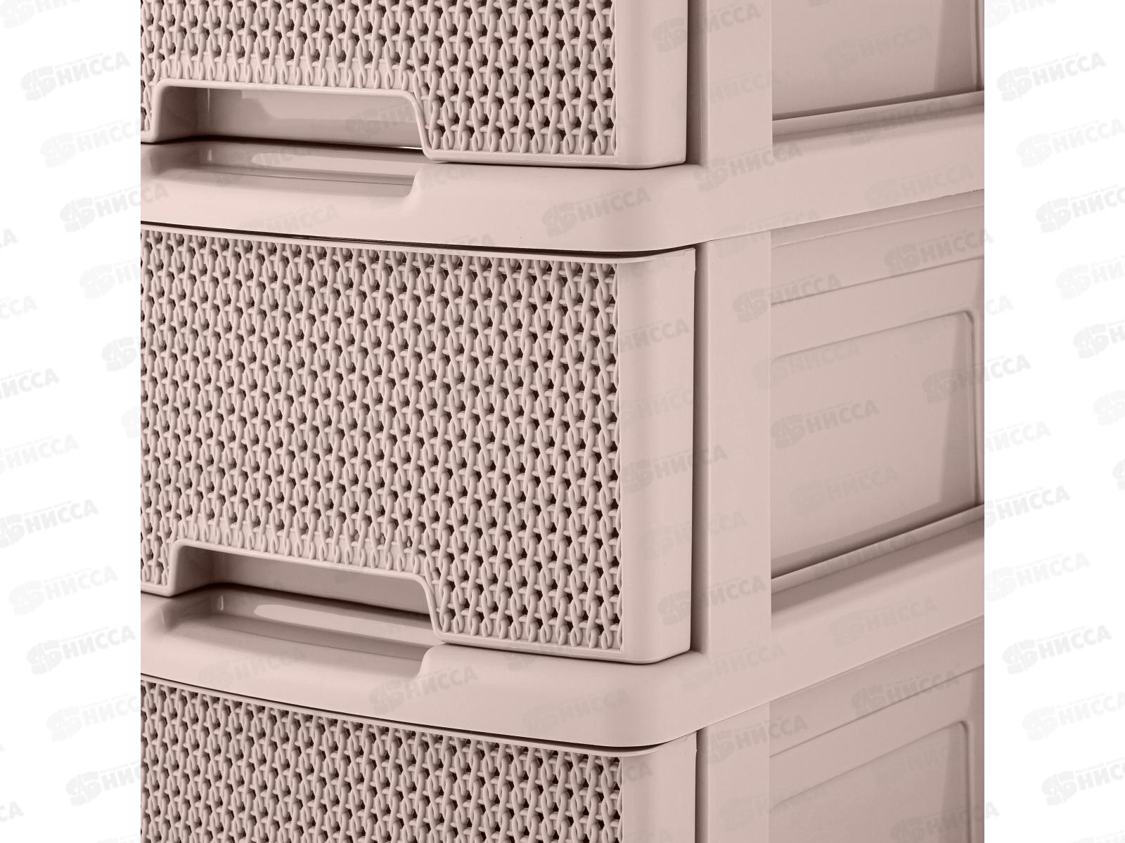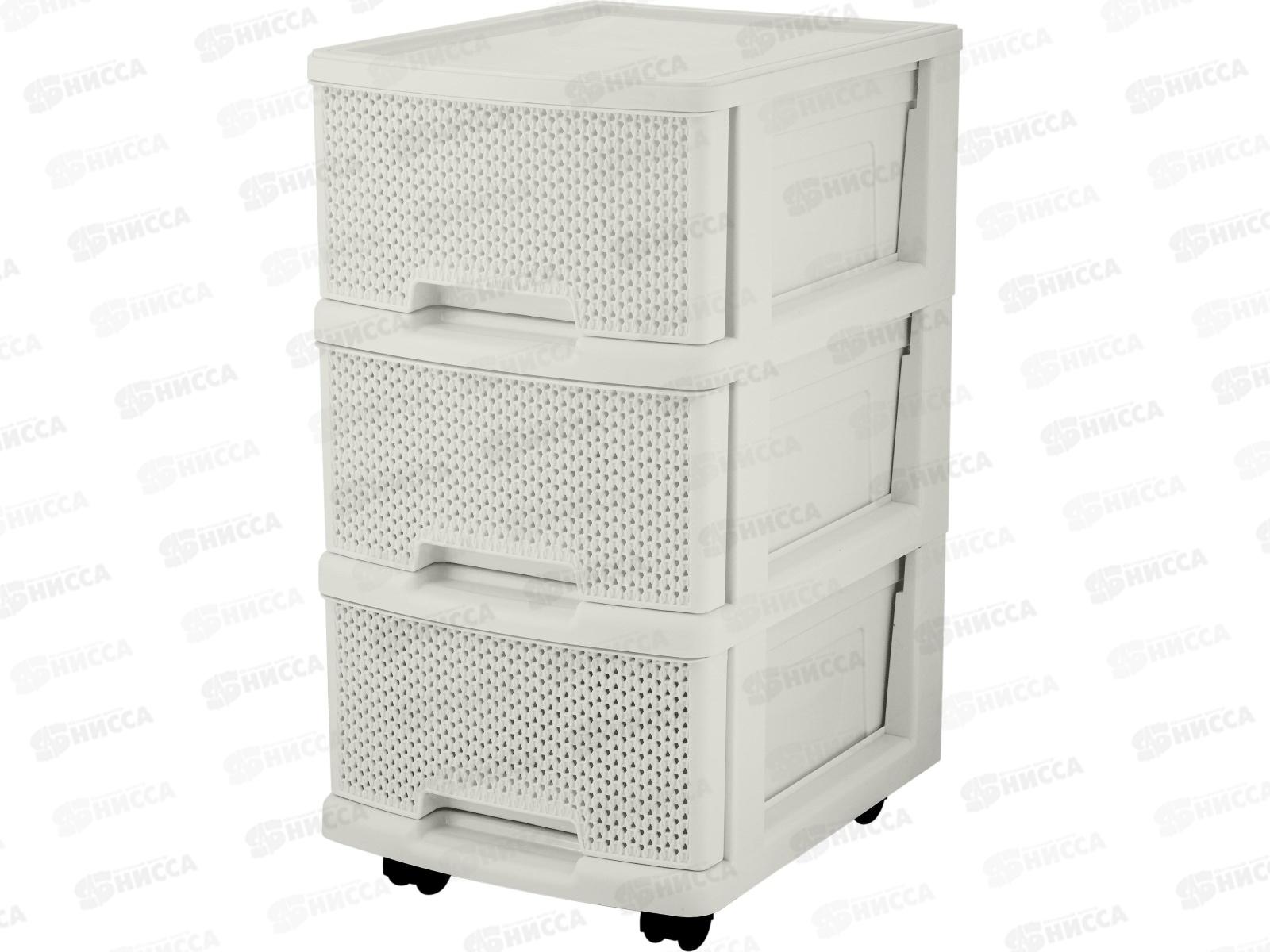 Комод изготовлен из высококачественного пластика. Ящики оформлены уникальным дизайном под ротанг. Комод предназначен для хранения различных вещей и состоит из трех вместительных выдвижных секций. Такой оригинальный комод надежно защитит вещи от загрязнений, пыли и моли, а также позволит вам хранить их компактно и с удобством. Стильный дизайн комода дополнит интерьер комнаты.