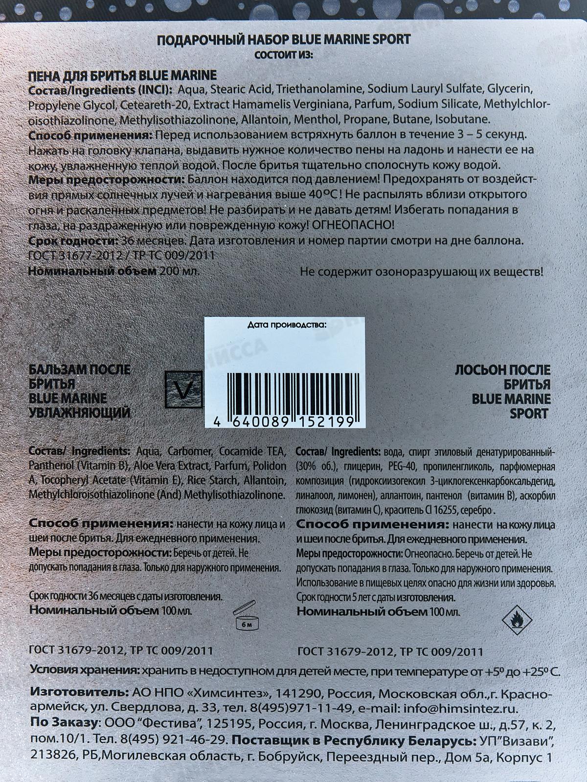 Набор Blue Marine Sportl подарочный набор 085 (бальзам после бритья 100+пена для бритья 200мл) мужской *7