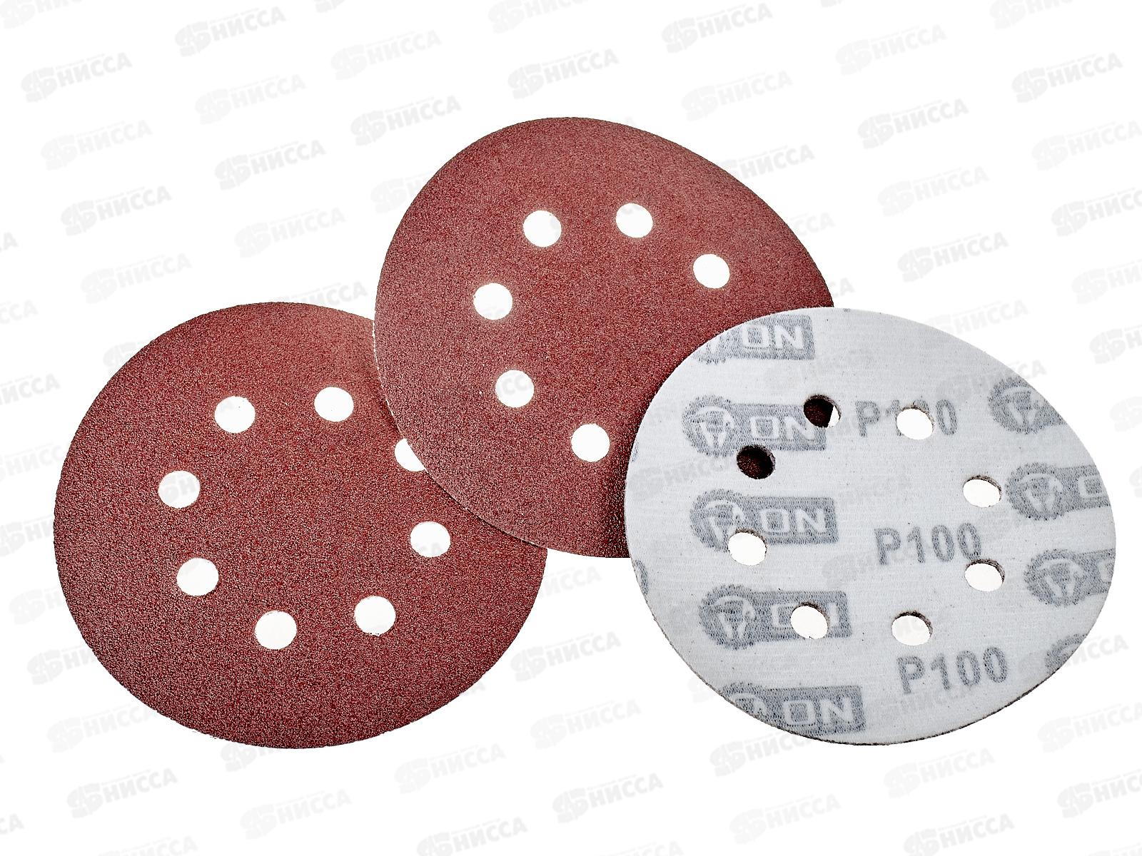 Круг абразивный шлифовальный под липучку с перфорацией 125мм Р100 5шт ON