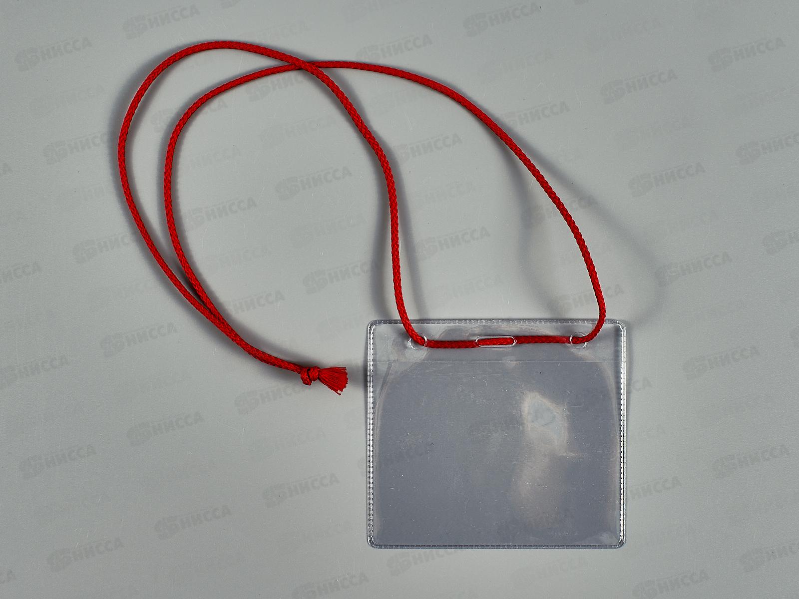 Бейдж ДПС 105*93мм горизонтальный на шнурке красный 12426 Г-102*10