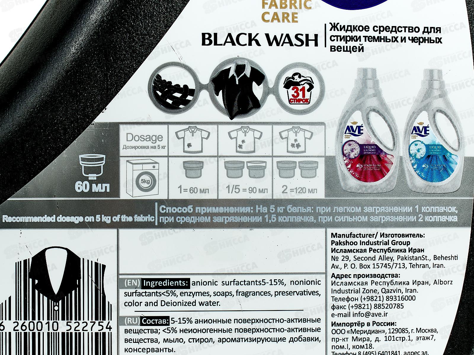 AVE Жидкое средство для стирки Темных и черных вещей 1900мл 9144 *6