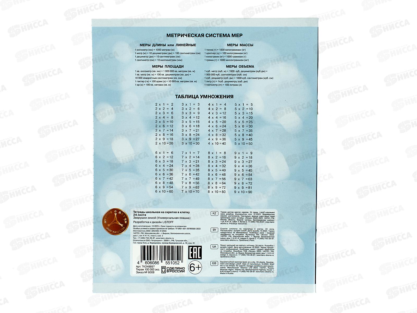 Тетрадь 24листа клетка ЭКСМ Зверушки зимой, ТК0248897 *60