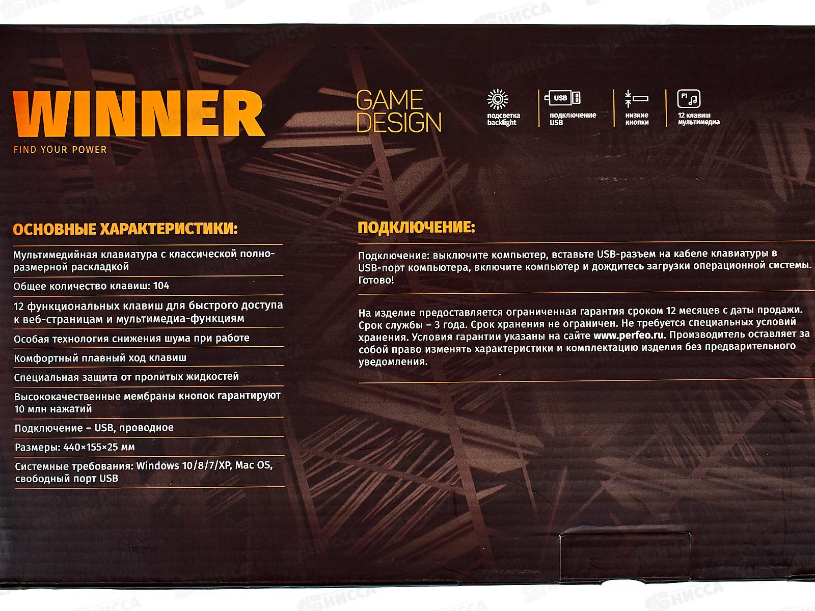 Клавиатура проводная Perfeo WINNER GAME DESIGN, подсветка, USB, чёрный B4892