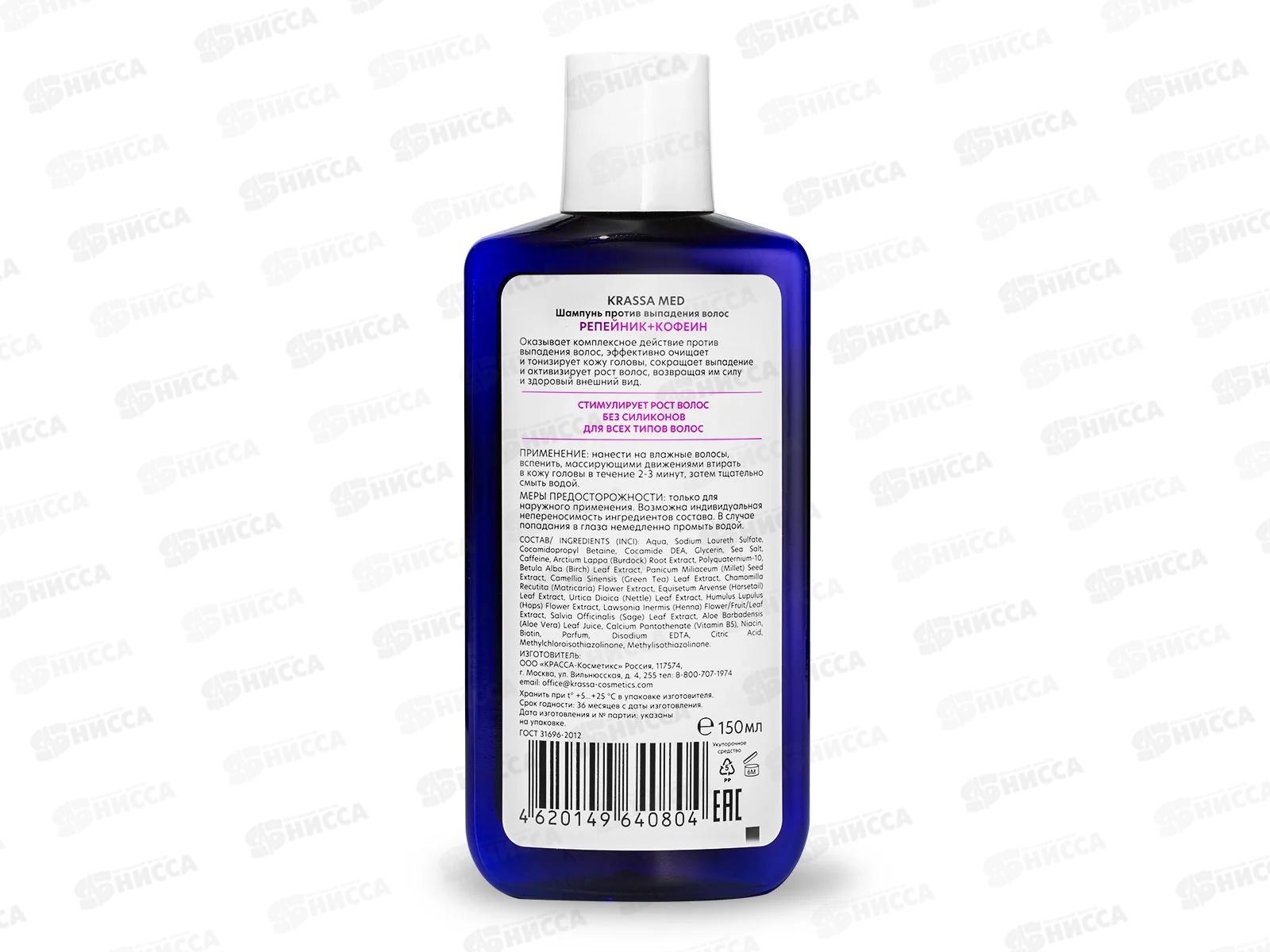 Krassa MED шампунь для волос Репейник+кофеин против выпадения 150мл *12