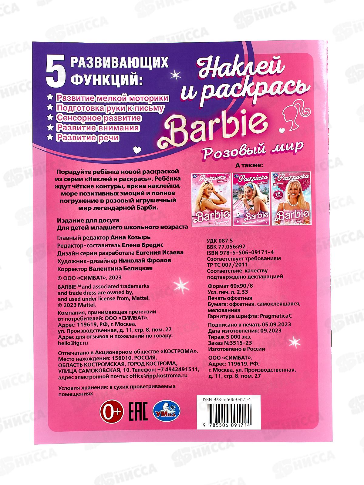 Раскраска "УМКА" 09171-4, Розовый мир. Барби. Наклей и раскрась *50