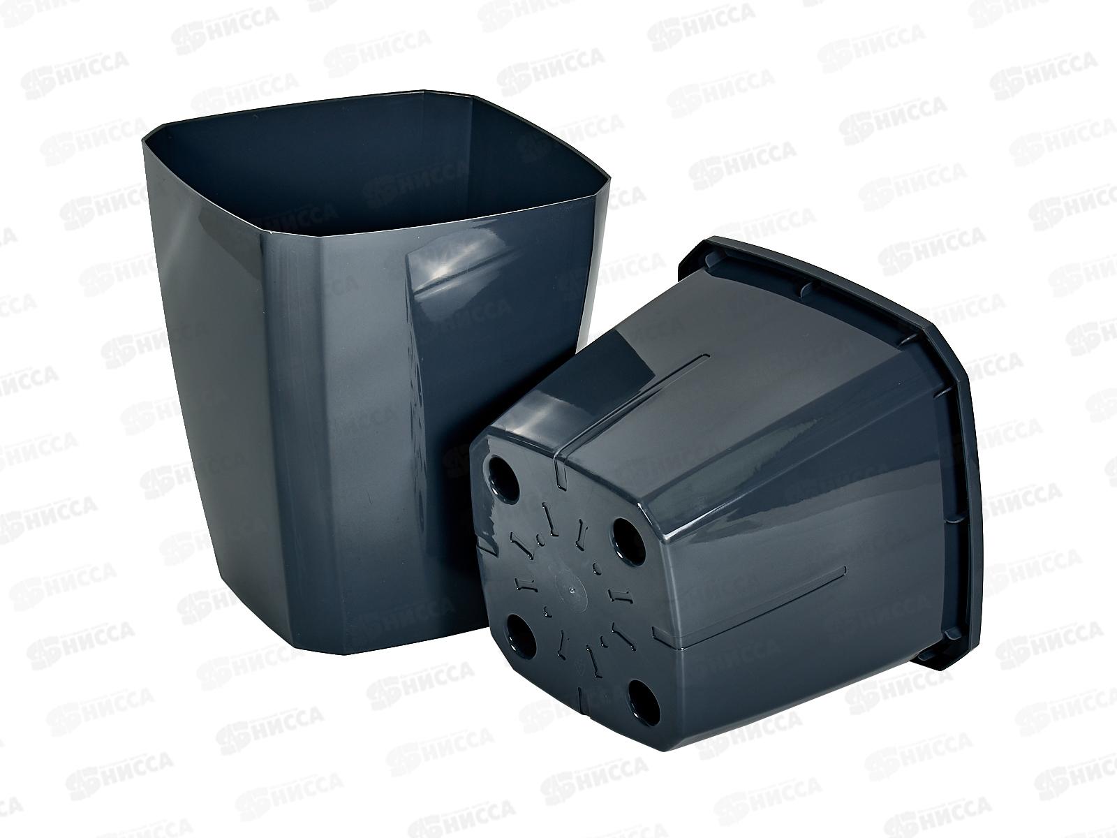 Кашпо Лаунж 2,4л квадратное с дренажной вставкой Чернильн-сер С371Чсер