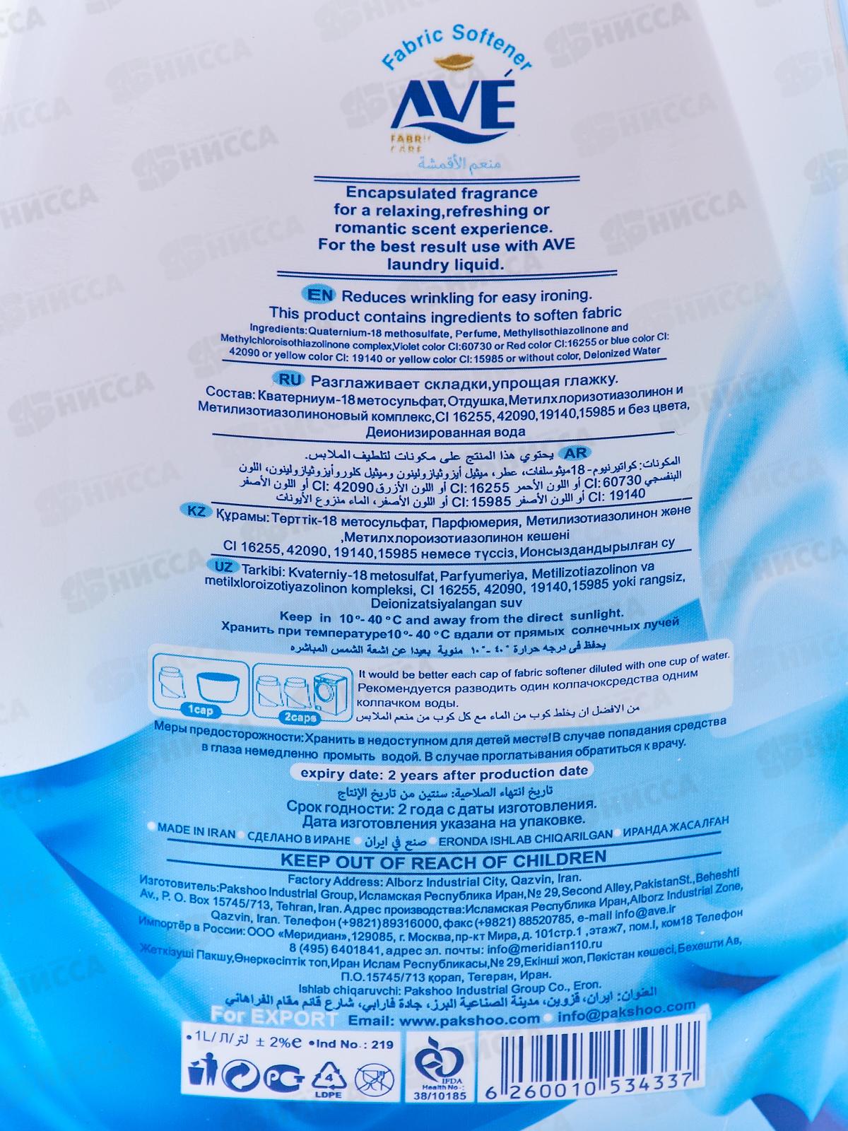 AVE Кондиционер для белья Мягкие духи/White Lily 1000мл 0026 *12