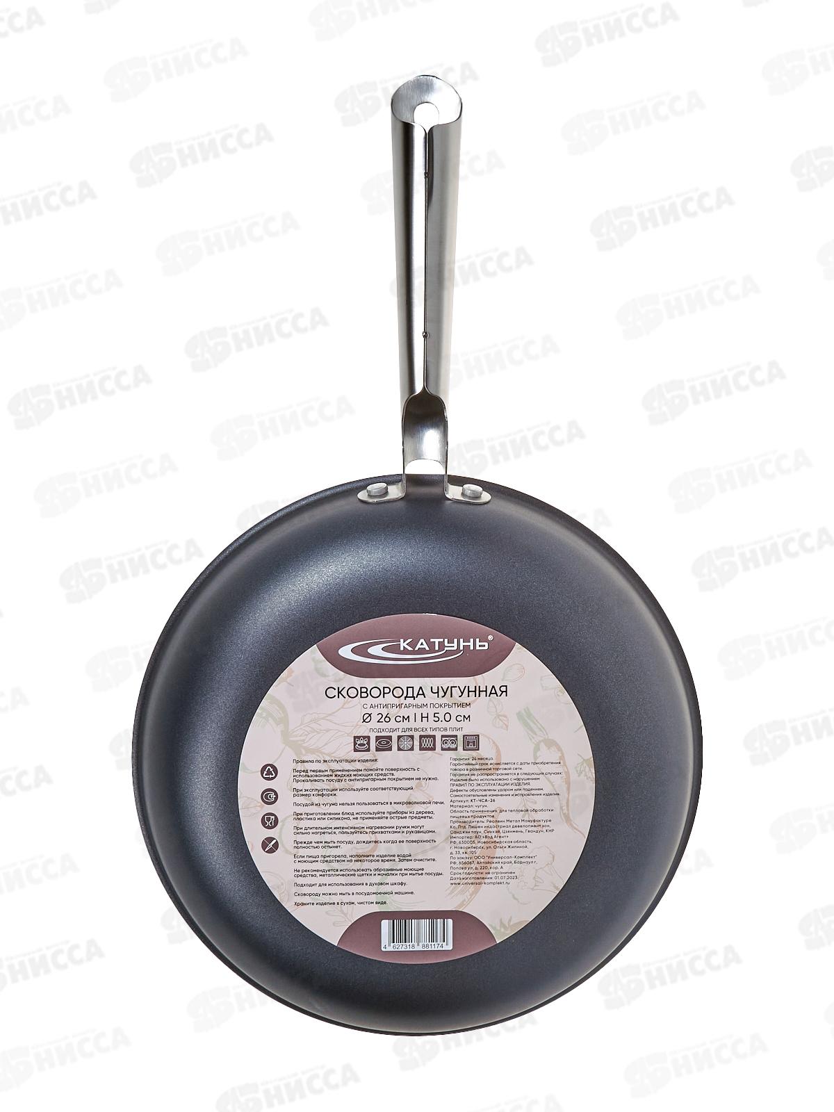 Сковорода 26см Cast Iron без крышки чугунная КТ-ЧСА-26