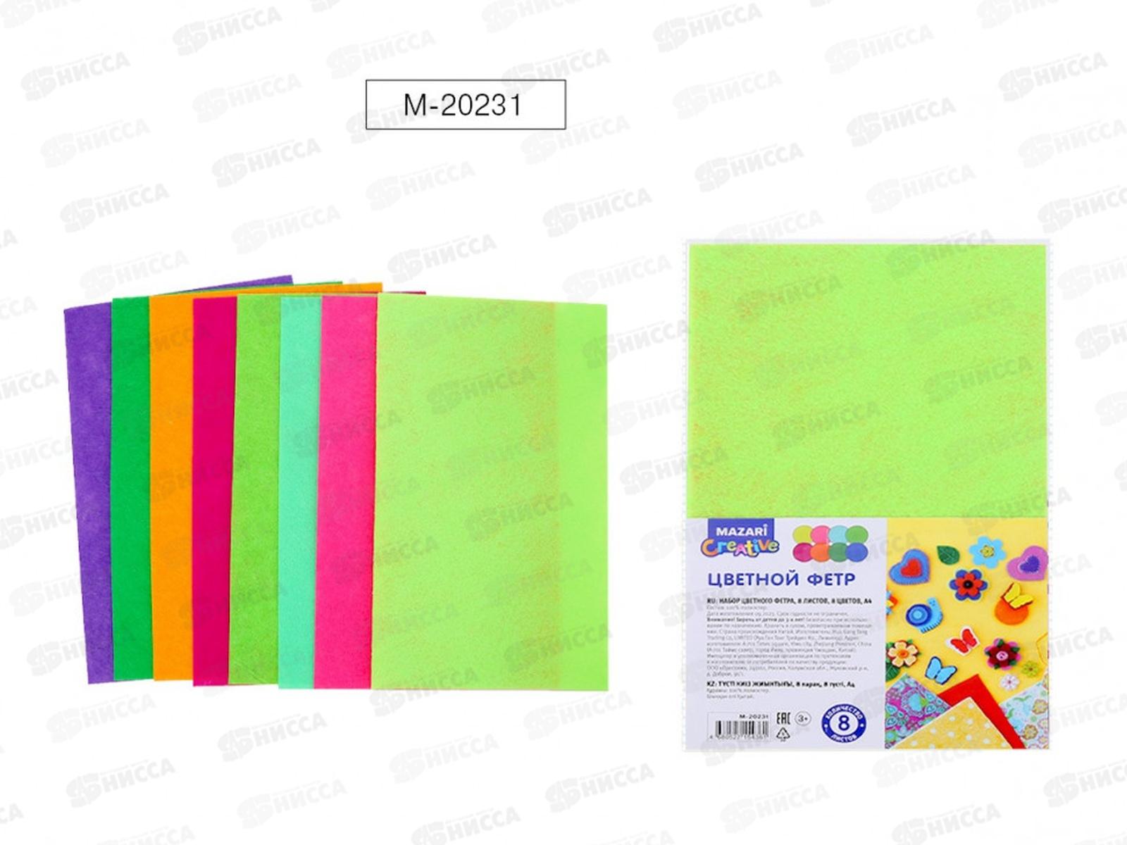 Фетр Mazari 8цв. формат А4 ассорти М-20231 *20