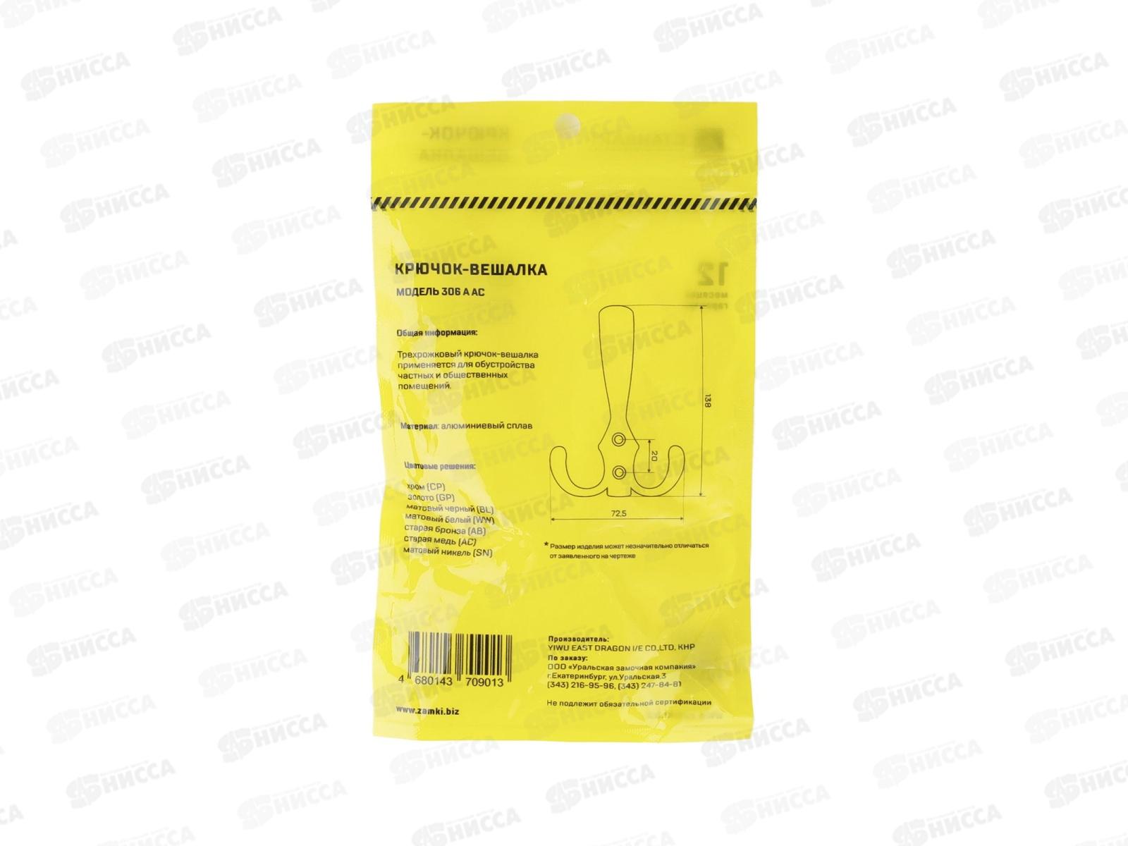 Крючок-вешалка Стандарт 306 A AC ст.медь европакет *40 842