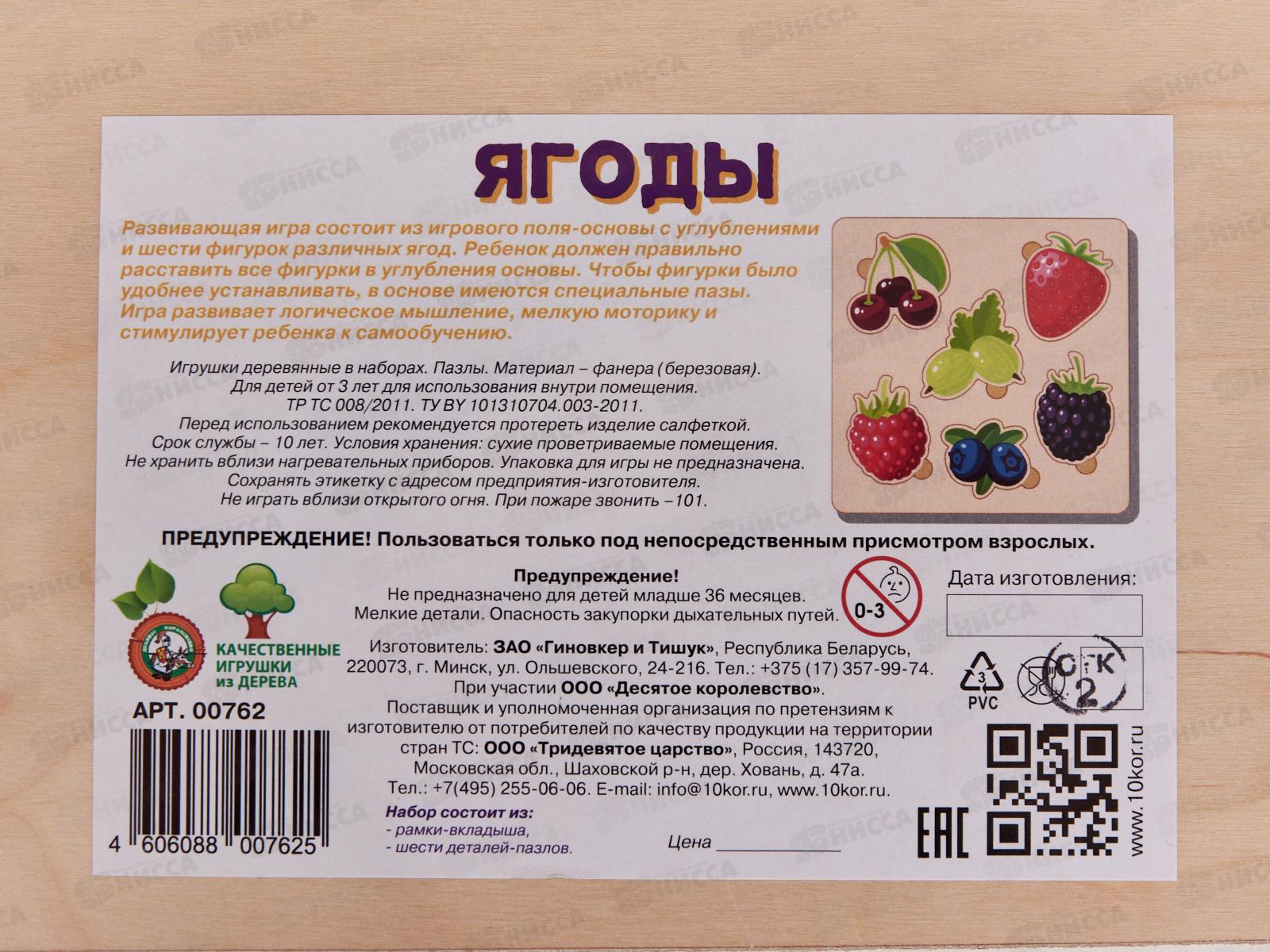 Игра развивающая деревянная "Ягоды" (21х21см) 00762