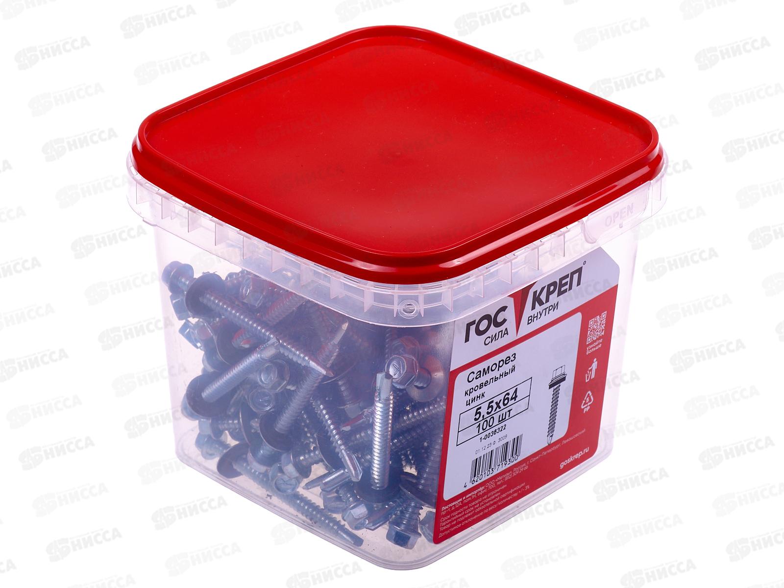 Саморез кровельный 5,5*64 (100шт) цинк, ГОСКРЕП контейнер