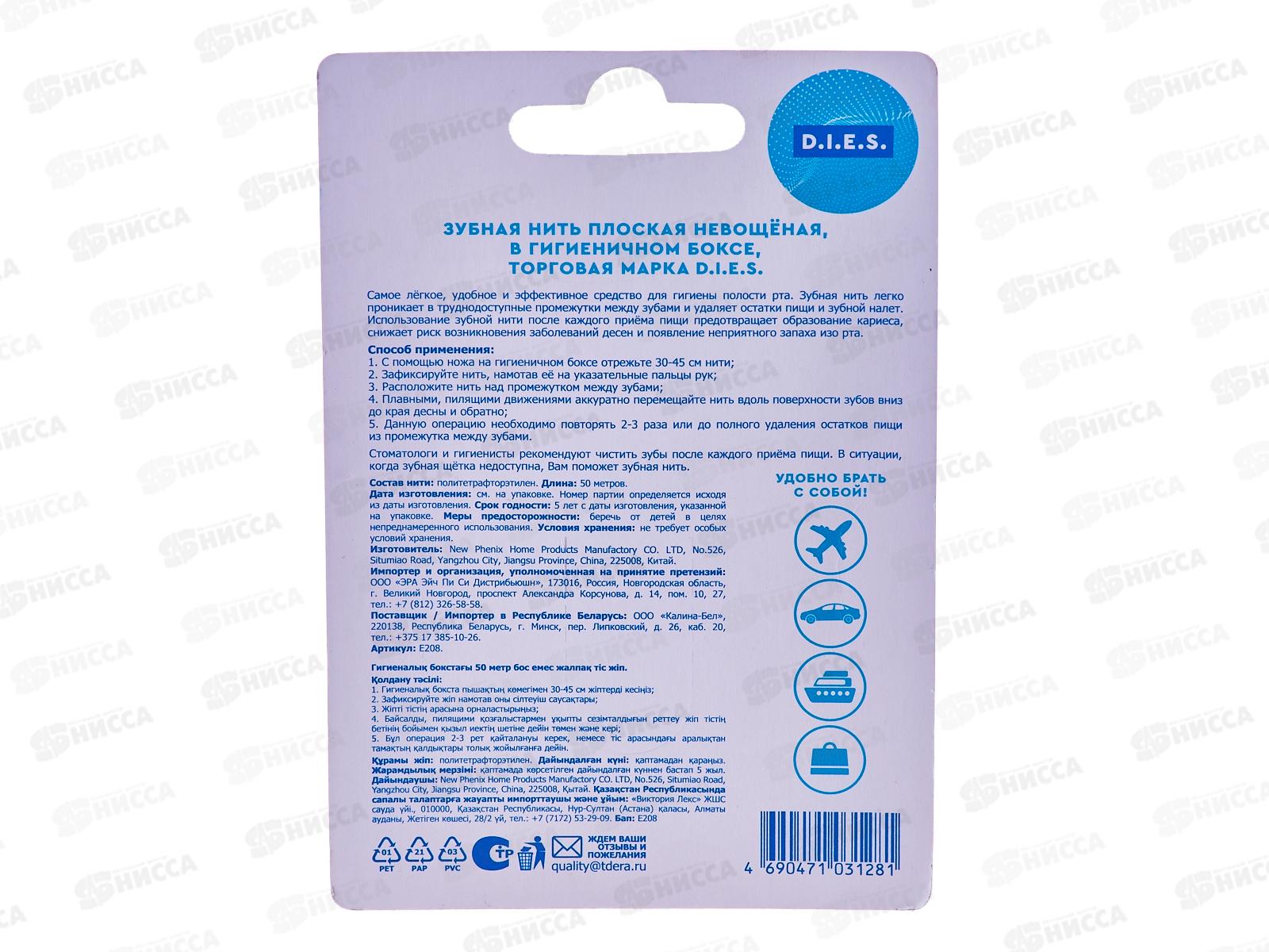 Зубная нить D.I.E.S. невощеная это самое лёгкое, удобное и эффективное средство для гигиены полости рта. Зубная нить легко проникает в труднодоступные промежутки между зубами и удаляет остатки пищи и зубной налет. Использование зубной нити после каждого приёма пищи предотвращает образование кариеса, снижает риск возникновения заболеваний десен и появление неприятного запаха изо рта.