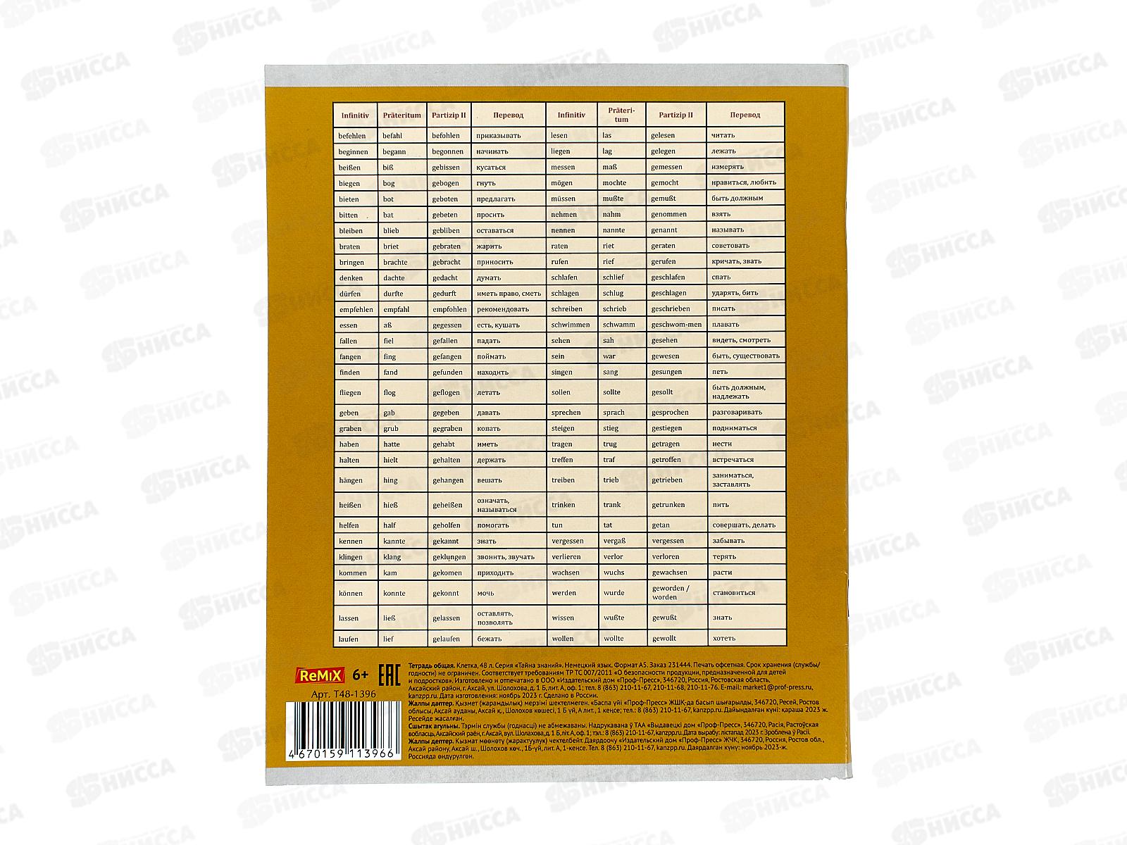 Тетрадь 48л кл. Remix. "Тайна знаний" Немецкий язык второй блок, Т48-1396 *80
