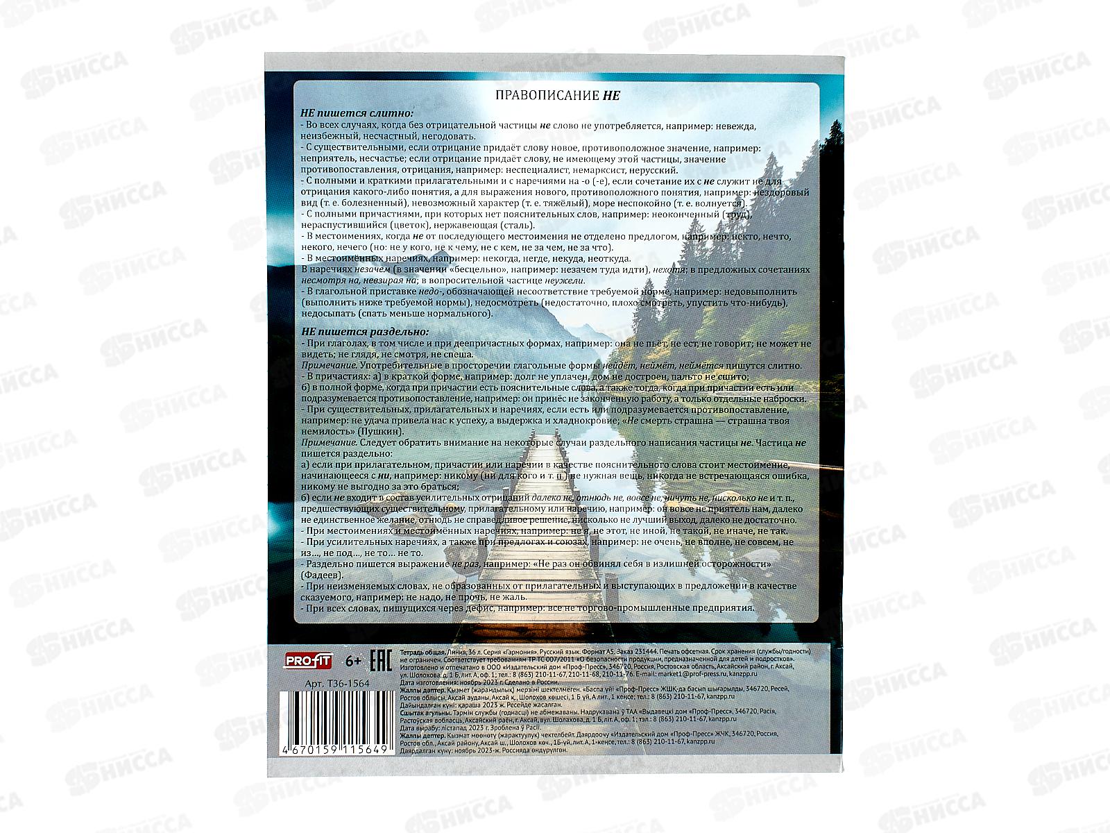 Тетрадь 36л лин. Profit "Гармония" Русский язык, эконом, Т36-1564 *80