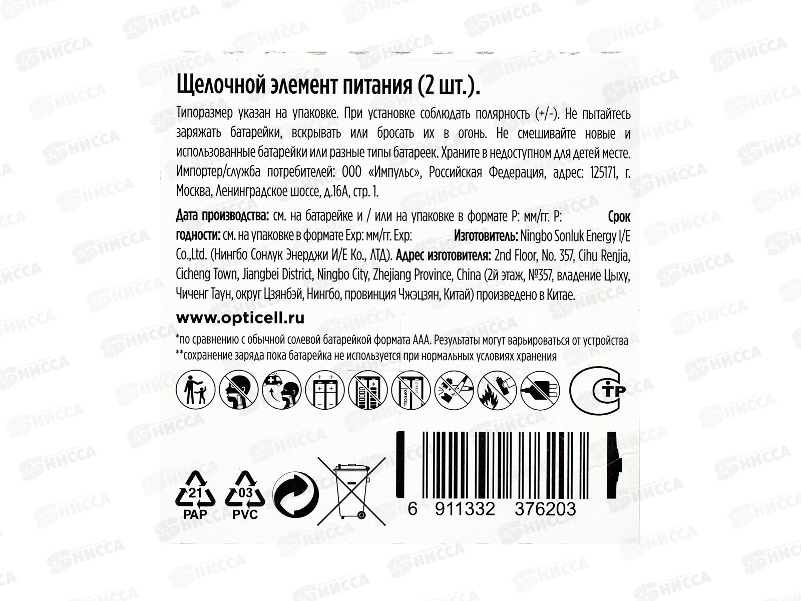 Батарейки базовой линейки Opticell размера AA - имеют защиту от протекания и не содержат тяжелых металлов.