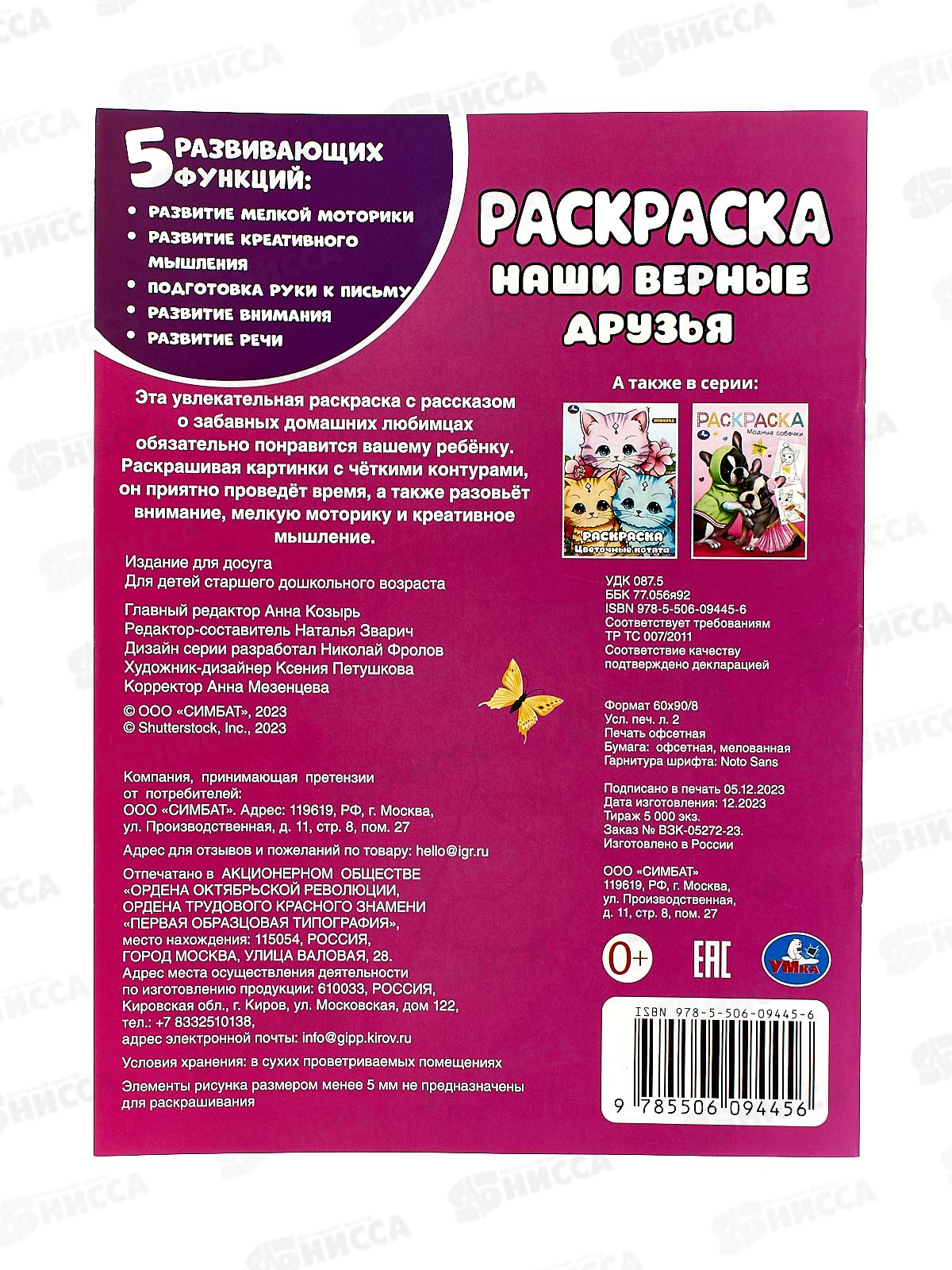 Раскраска «Наши верные друзья» ТМ «УМка» - отличный подарок для юных художников: