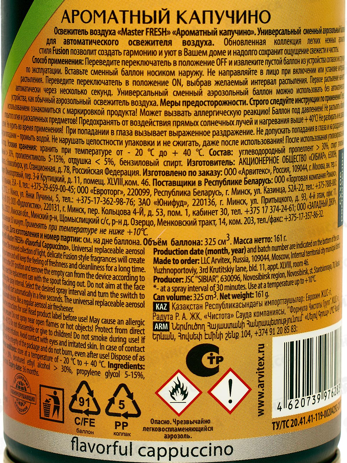 Master FRESH освежитель воздуха сменный баллон Ароматный капучино 250мл *12 С0006484