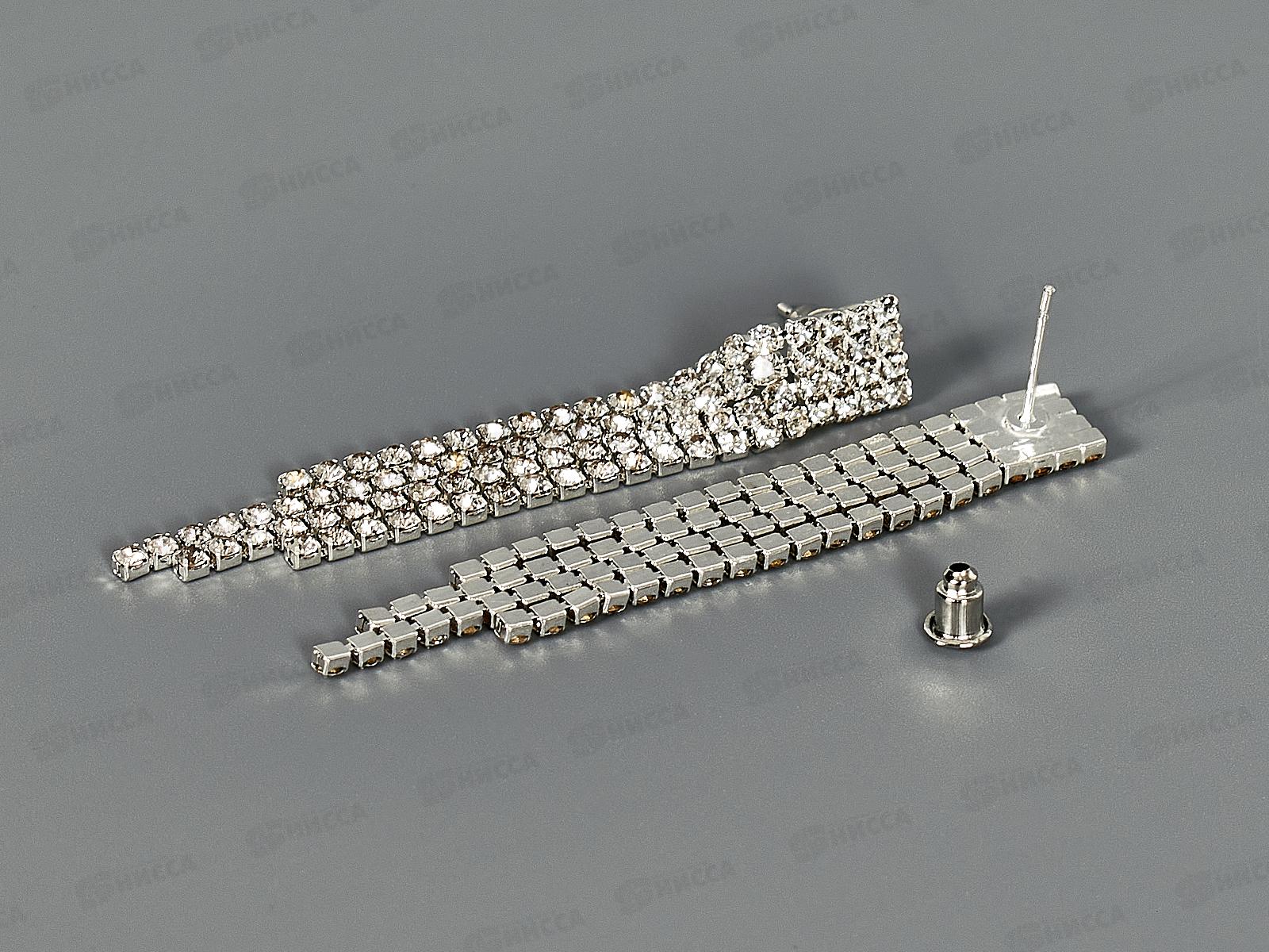 Серьги-гвоздики подвески со стразами 4 ряда №3235