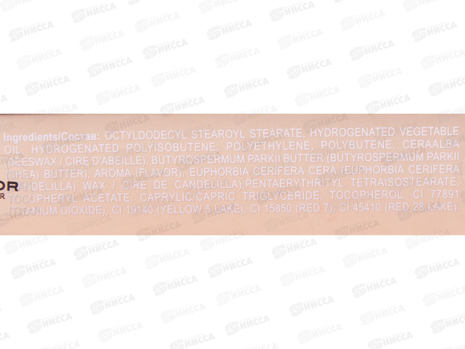 Состав: октилдодецилстеароилстеарат, гидрогенизированное растительное масло, гидрогенизированный полиизобутен, полиэтилен, полибутен, ceraalba (пчелиный воск / cire d'abeille), масло butyrospermum parkii (масло ши) (butyrospermum parkii), ароматизатор (вкус), euphorbia cerifera cera (воск канделильи / cire de candelilla), пентаэритритилтетраизостеарат, токоферилацетат, каприловый/капровый триглицерид, токоферол, ci 77891 (диоксид титана), ci 19140 (желтый 5 озеро), ci 15850 (красный 7), ci 45410 (красный 28 озеро).
