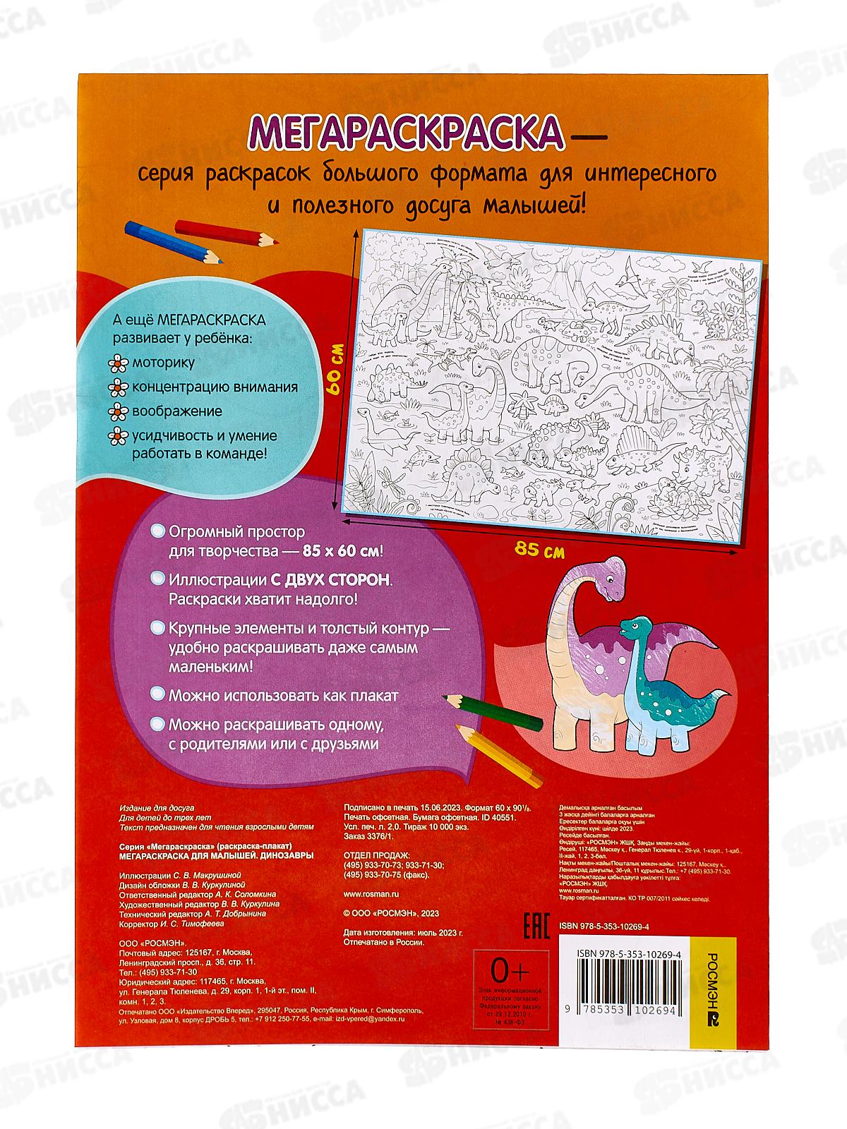 МЕГАРАСКРАСКА серия раскрасок большого формата для интересного и полезного досуга малышей!Огромный простор для творчества 85 х 60 см! Иллюстрации С ДВУХ СТОРОН. Раскраски хватит надолго! Крупные элементы и толстый контур удобно раскрашивать даже самым маленьким! Можно использовать как плакат. Можно раскрашивать одному, с родителями или с друзьями. А ещё МЕГАРАСКРАСКА развивает у ребёнка: моторику, концентрацию внимания, воображение, усидчивость и умениеработать в команде!
