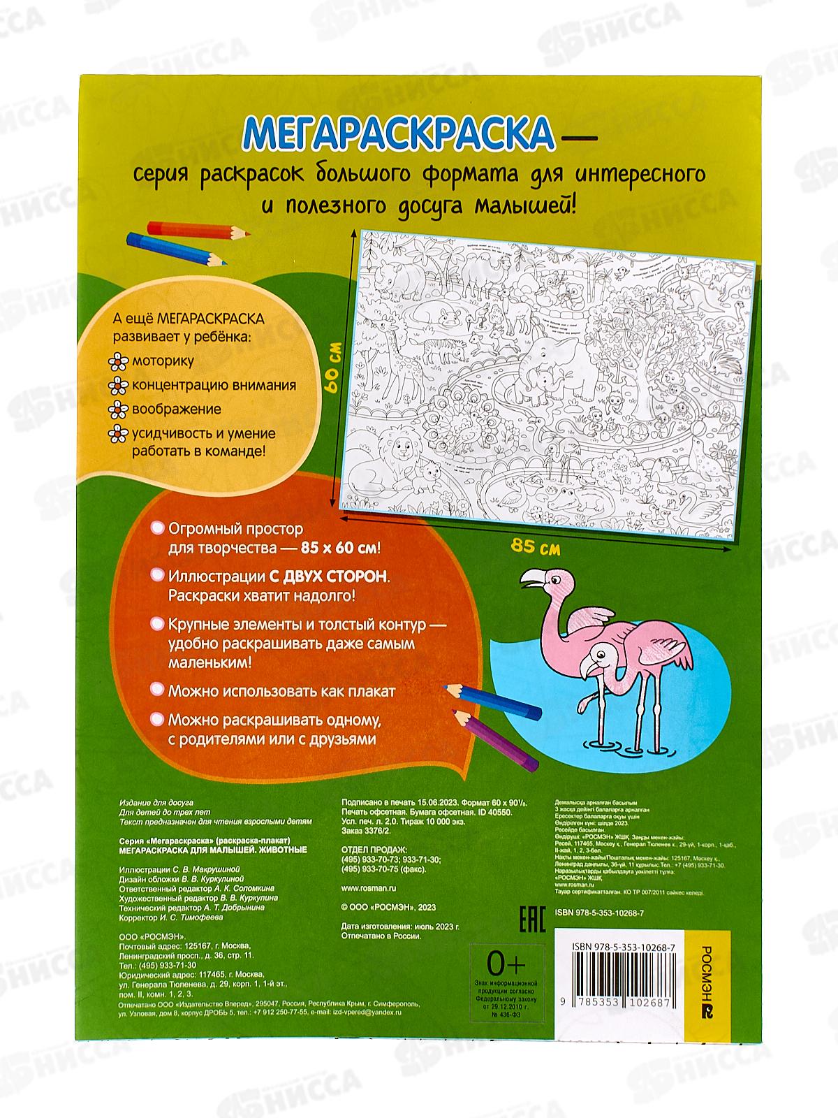 МЕГАРАСКРАСКА серия раскрасок большого формата для интересного и полезного досуга малышей!Огромный простор для творчества 85 х 60 см! Иллюстрации С ДВУХ СТОРОН. Раскраски хватит надолго! Крупные элементы и толстый контур удобно раскрашивать даже самым маленьким! Можно использовать как плакат. Можно раскрашивать одному, с родителями или с друзьями. А ещё МЕГАРАСКРАСКА развивает у ребёнка: моторику, концентрацию внимания, воображение, усидчивость и умениеработать в команде!
