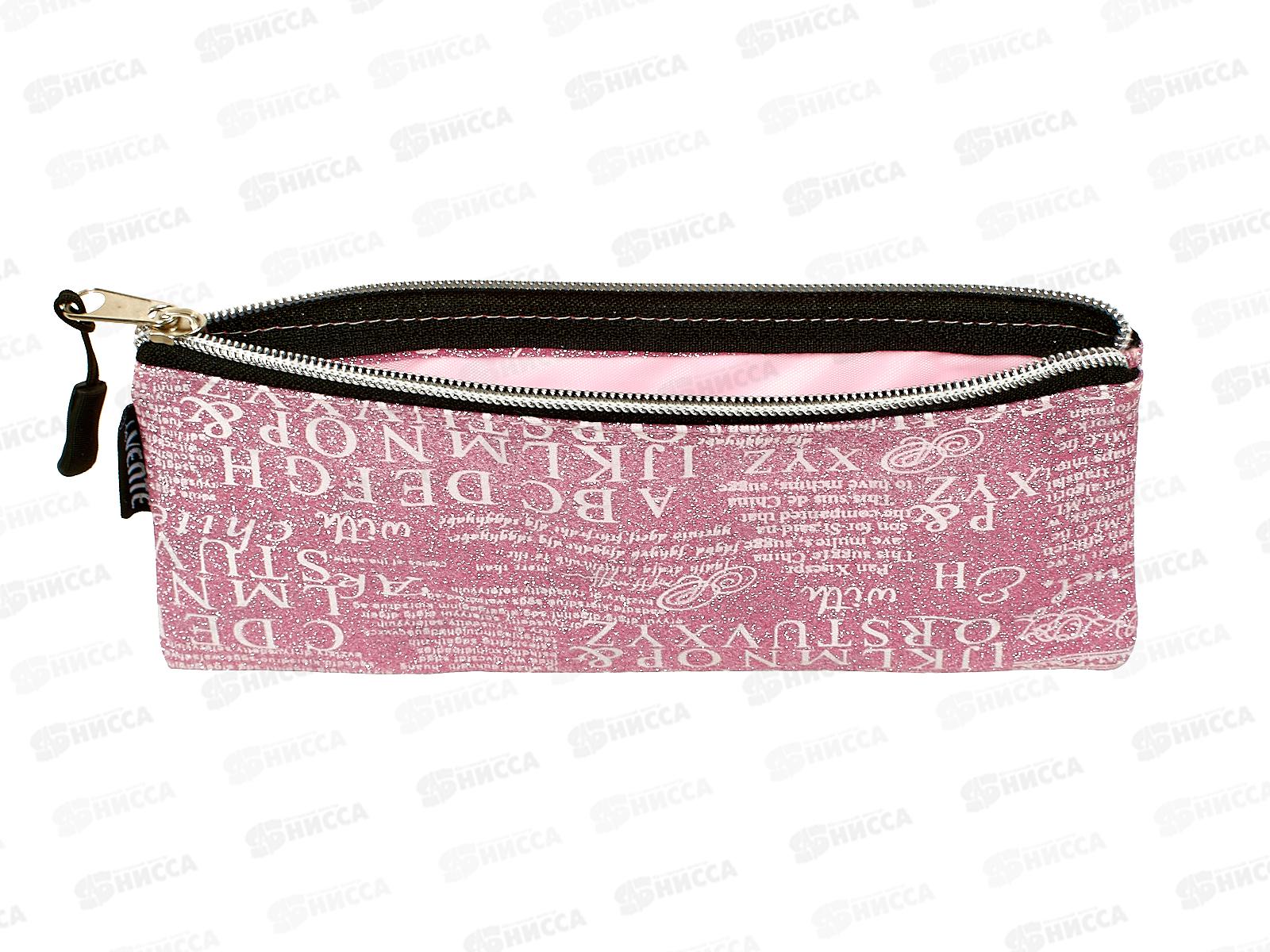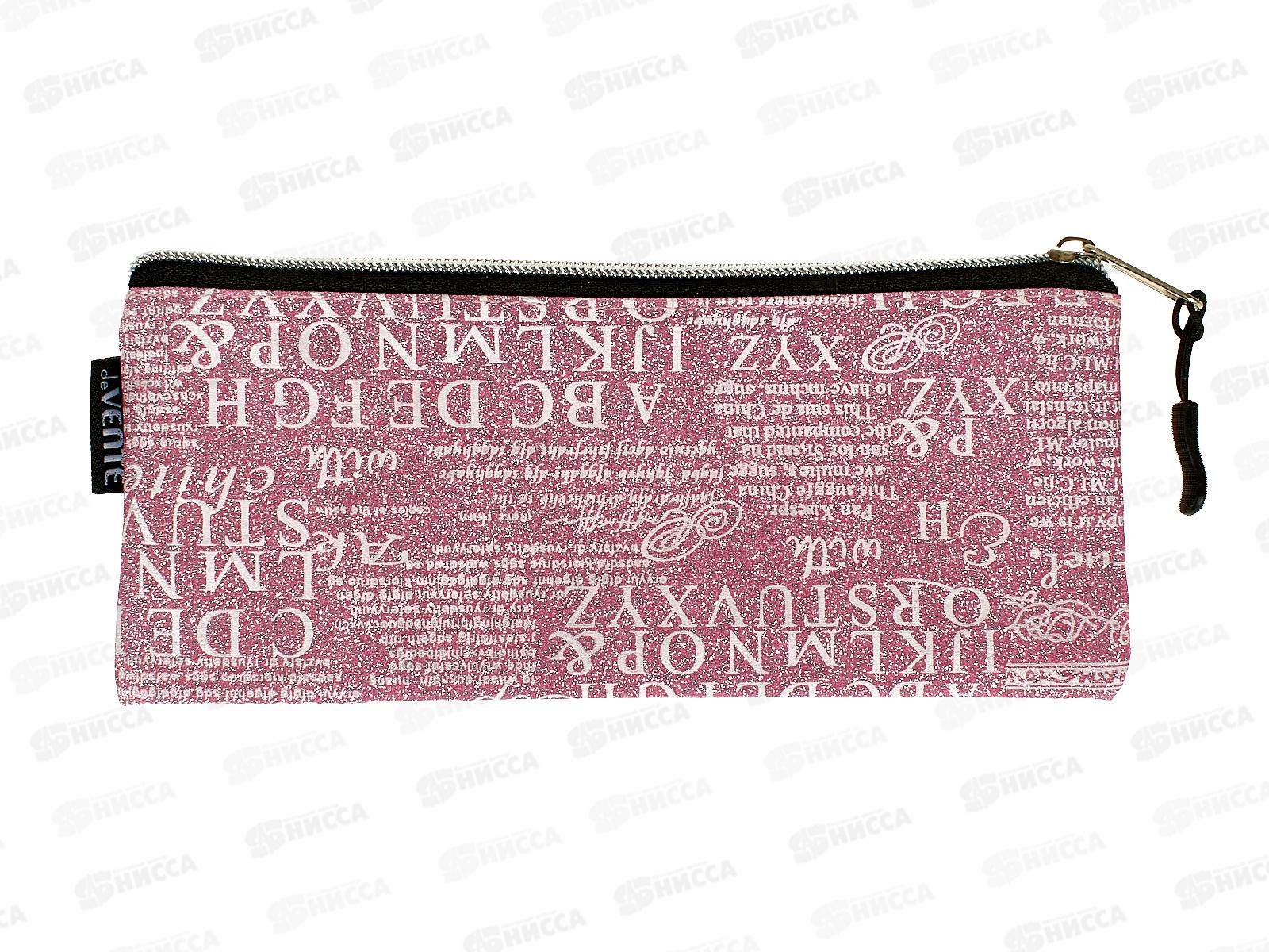 Пенал deVente 21,5*9*1см, Text молн., текстиль, розовый 7024208