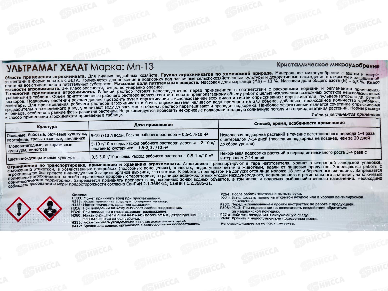 Ультрамаг Хелат Mn-13 минеральное микроудобрение 5г пакет *50