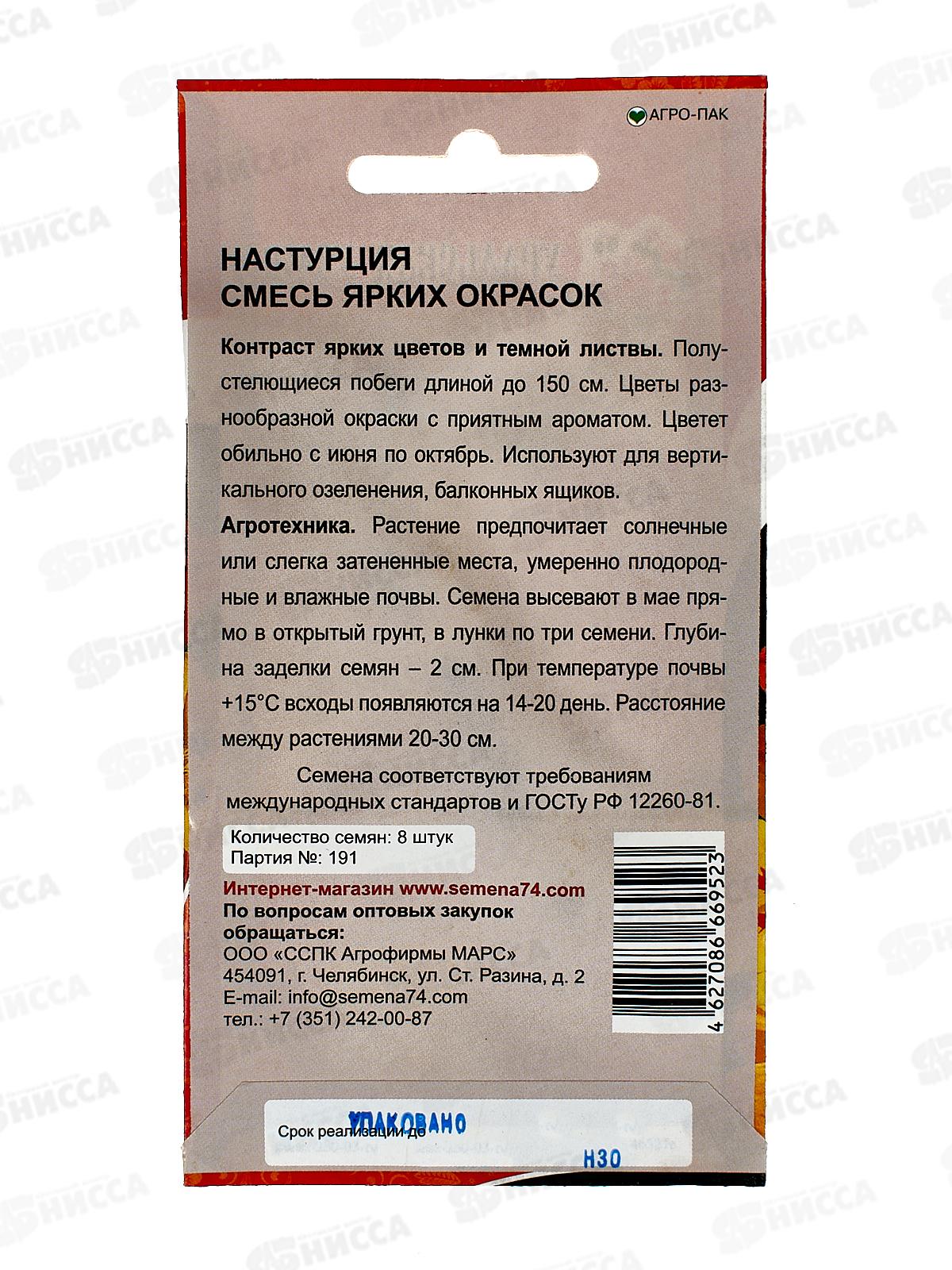 Настурция Смесь ярких окрасок Евро УУ *10 УрД