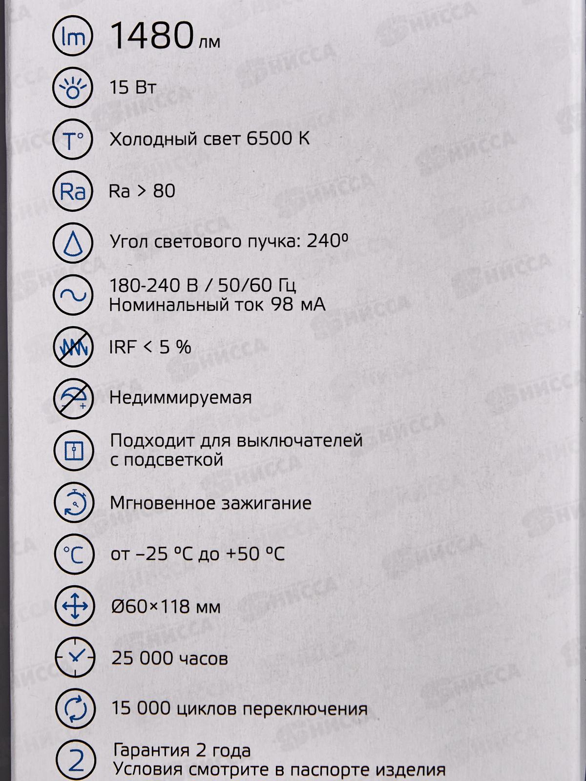 Лампа светодиодная Gauss Elementary A60 15Вт E27 6500К 1480Lm 23235 *50