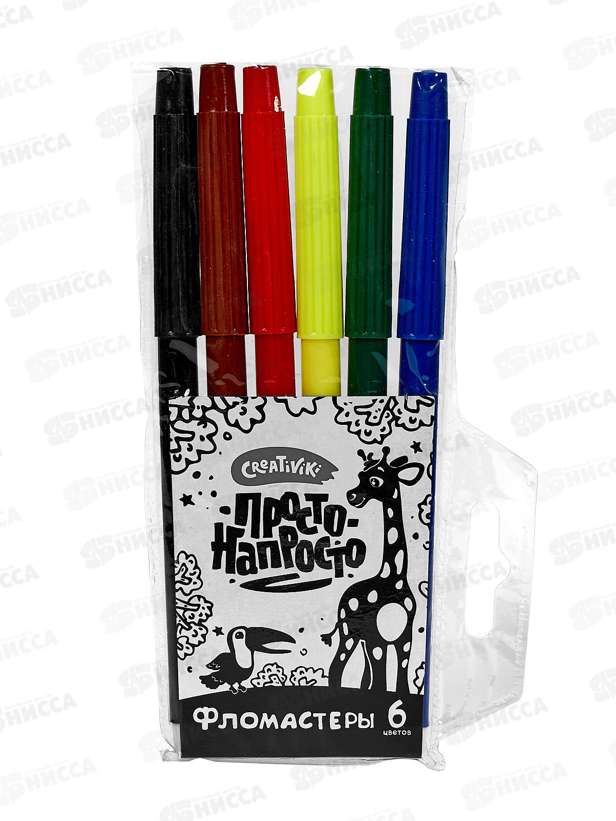 Фломастеры 6 цветов Creativiki ПРОСТО круглый корпус ФЛНВК06КР СРОК до 10,25*48