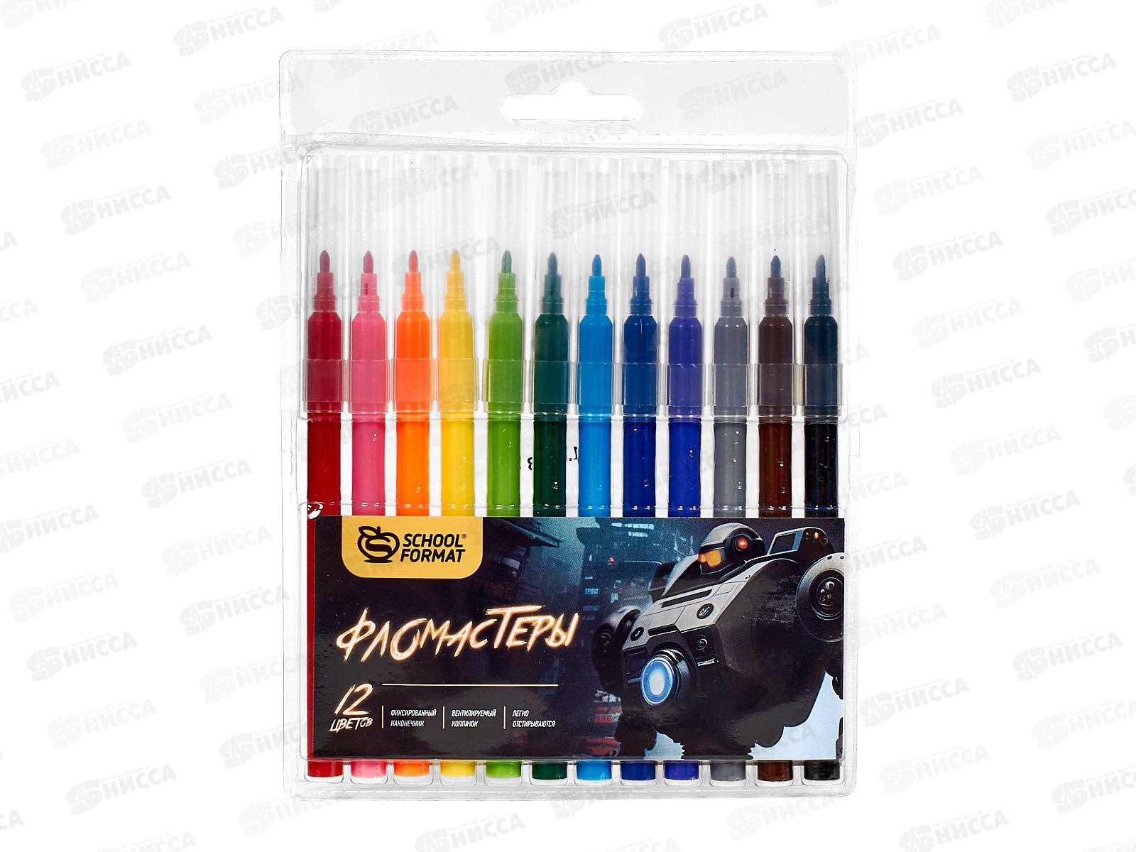 Фломастеры 12 цветов schoolФОРМАТ микс для мал, блист., ФЛ12-МДМ *24/192