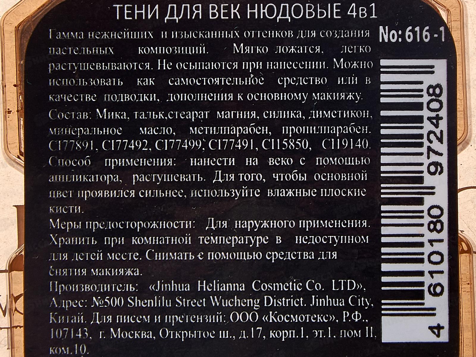 Состав: слюда, тальк, стеарат магния, силика, диметикон, минеральное масло, метилпарабен, пропилпарабен, C177891, CI77492, C177499, C177491, C115850, C119140.