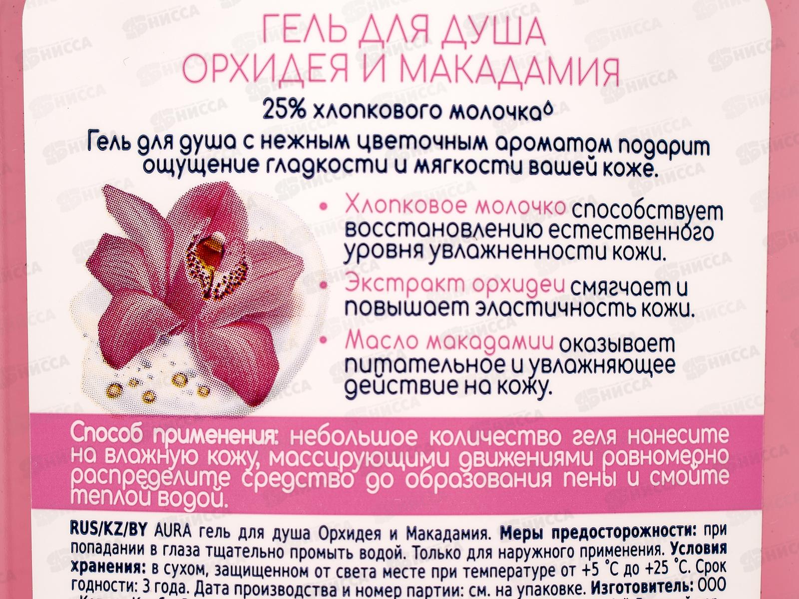 АУРА Гель для душа Орхидея и Макадамия390мл *8