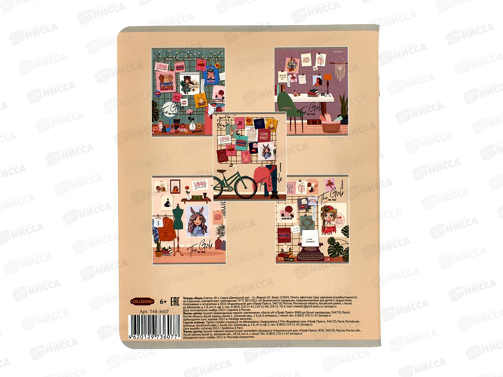 Тетрадь 48листов клетка Collezione Домашний уют-1, 5 дизайнов, Т48-3607 *5/80